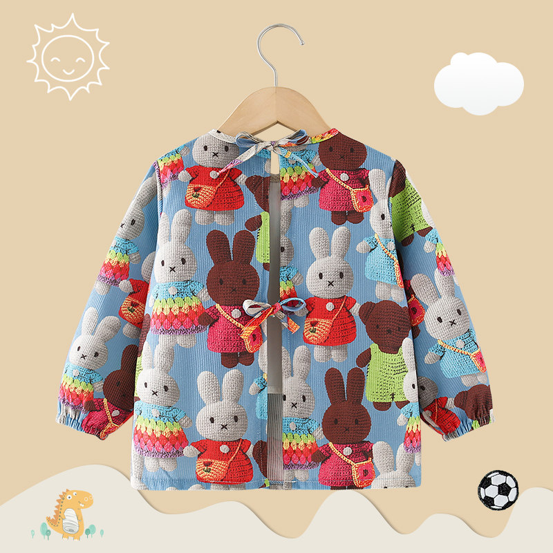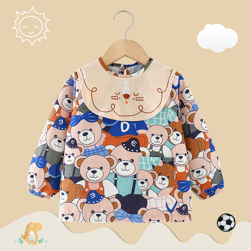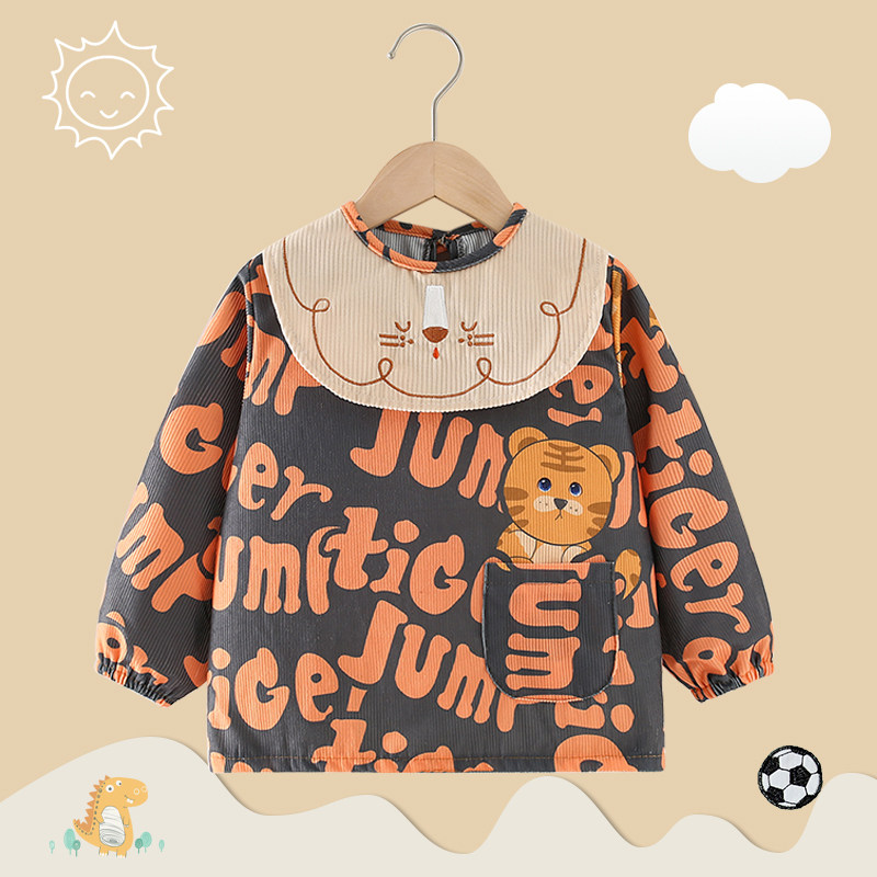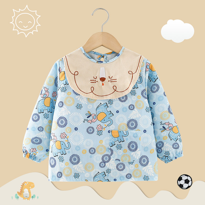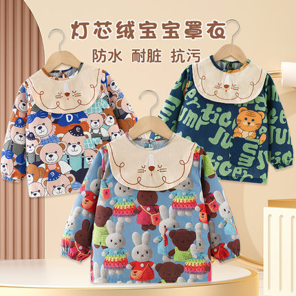 儿童罩衣秋冬季外穿男宝宝防脏围裙婴儿吃饭围兜长袖反穿护衣饭兜