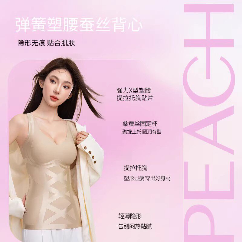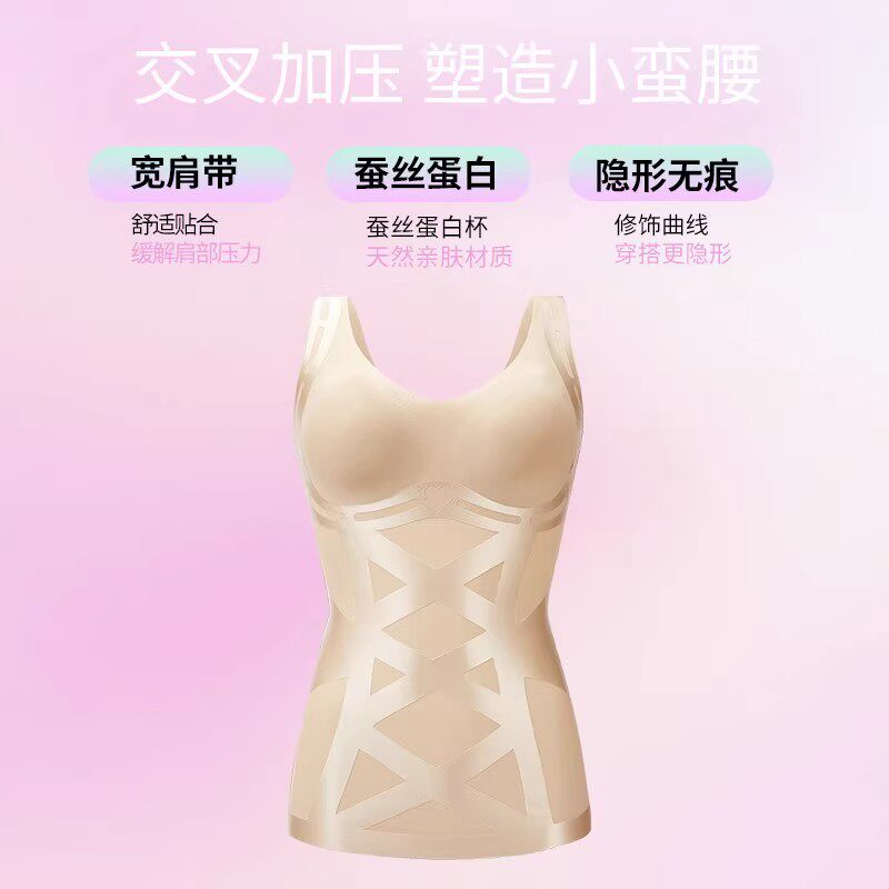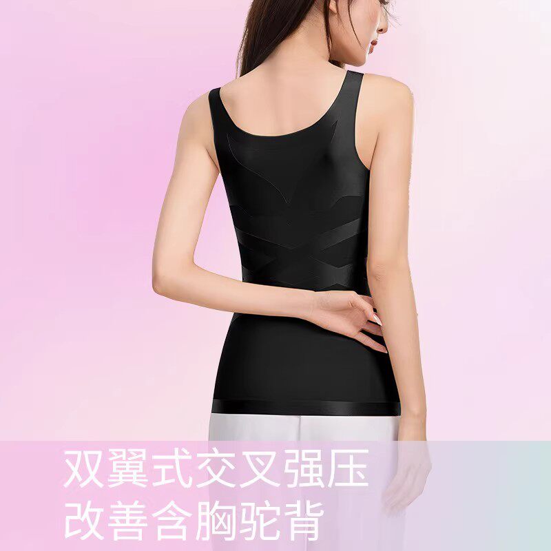 黑绷带交叉加压塑腰防驼背蚕丝背心女免穿文胸修身收腹塑身背心