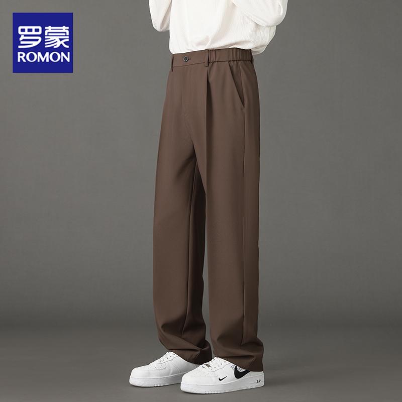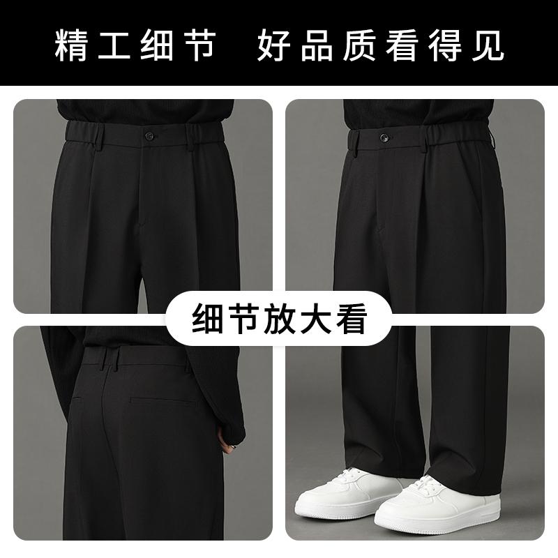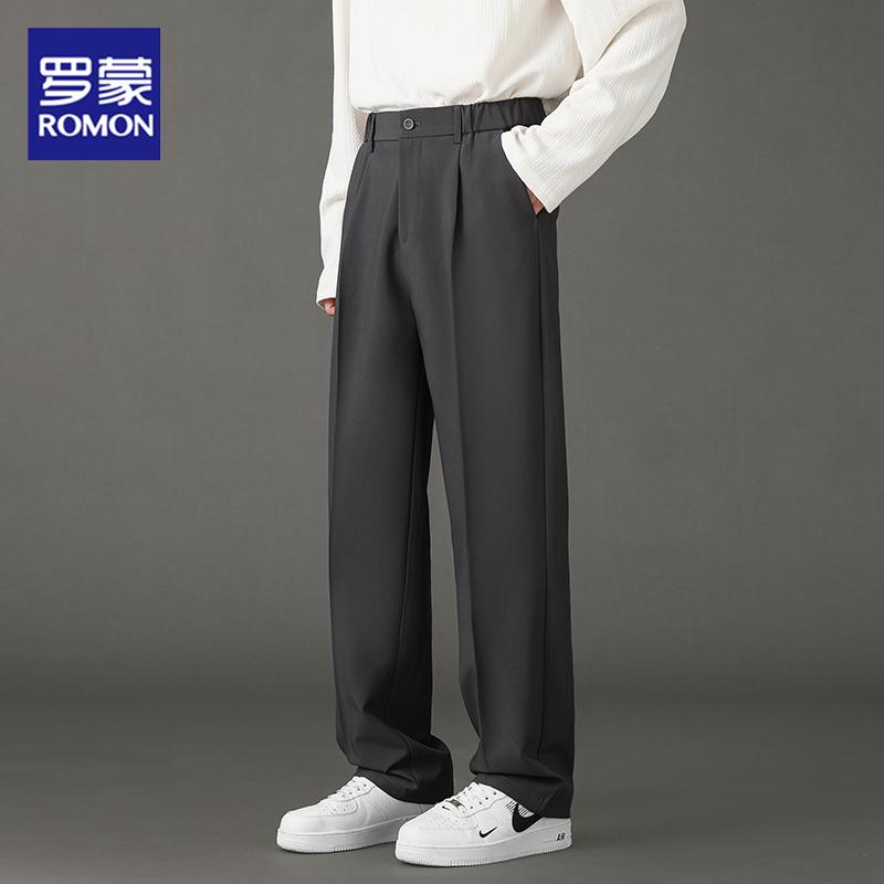罗蒙休闲西裤男士秋季薄款垂感直筒宽松长裤港风高级感黑色阔腿裤