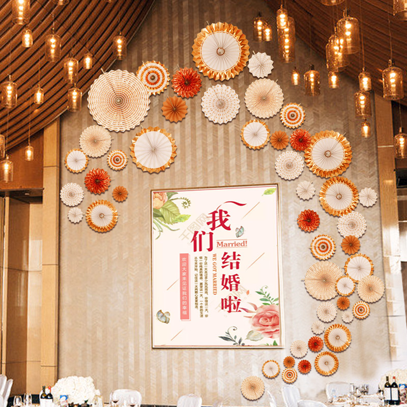 创意纸扇花背景墙装饰布置橱窗悬吊式天花板挂饰幼儿园超市舞台活