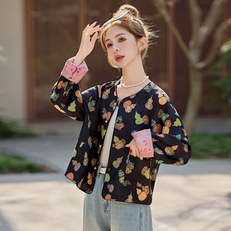 2025秋冬新款复古女装中国风年轻款圆领提花双面穿上衣外套SY2713