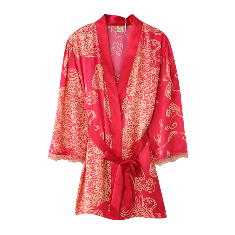 喜芬妮夏季性感冰丝红色结婚睡衣新婚情侣套装高档婚用一男一女