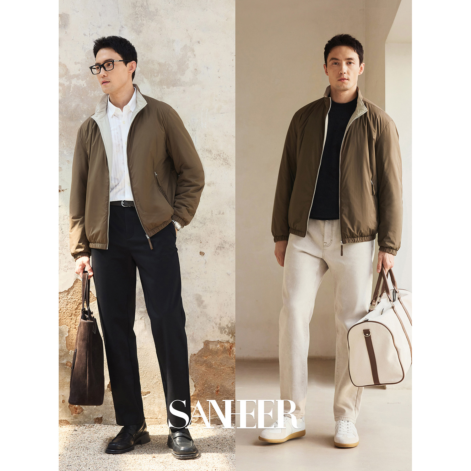 【商务精英绅士】轻量保暖羊毛棉填充 双面穿立领棉衣外套 DAC104