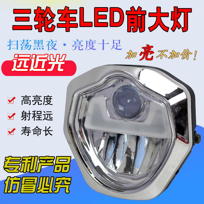 电动三轮车大灯总成超亮led大灯电瓶车摩托车前照灯强光12v-80v通