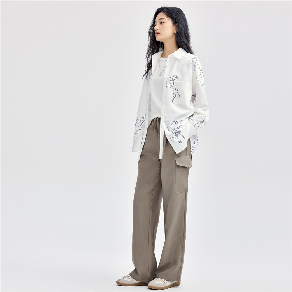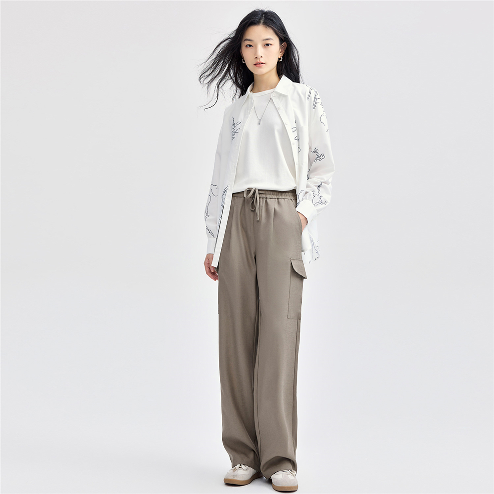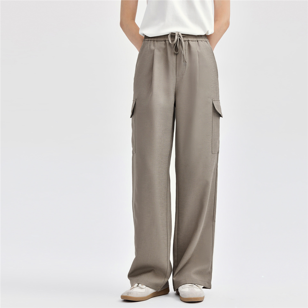 佐丹奴裤子女装工装口袋松紧腰梭织西装长裤 18414802