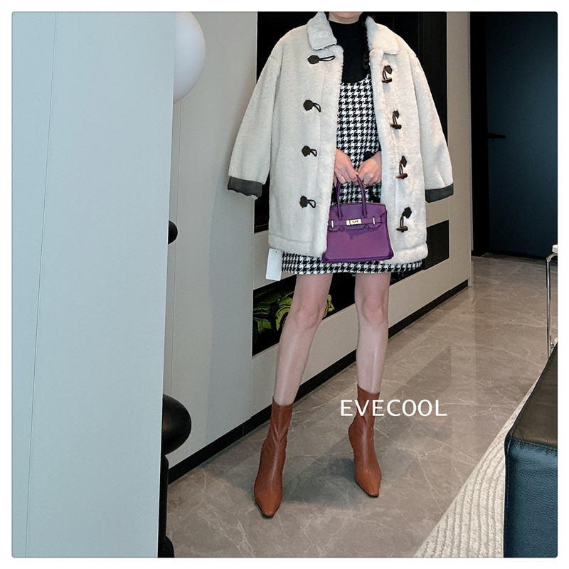 韩版直筒裙薄呢料千鸟格拼接短裙