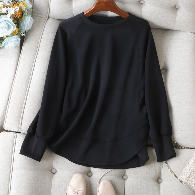 生活需要放松!大圆弧摆圆领蝙蝠袖宽松匹马棉莫代尔套头卫衣女秋