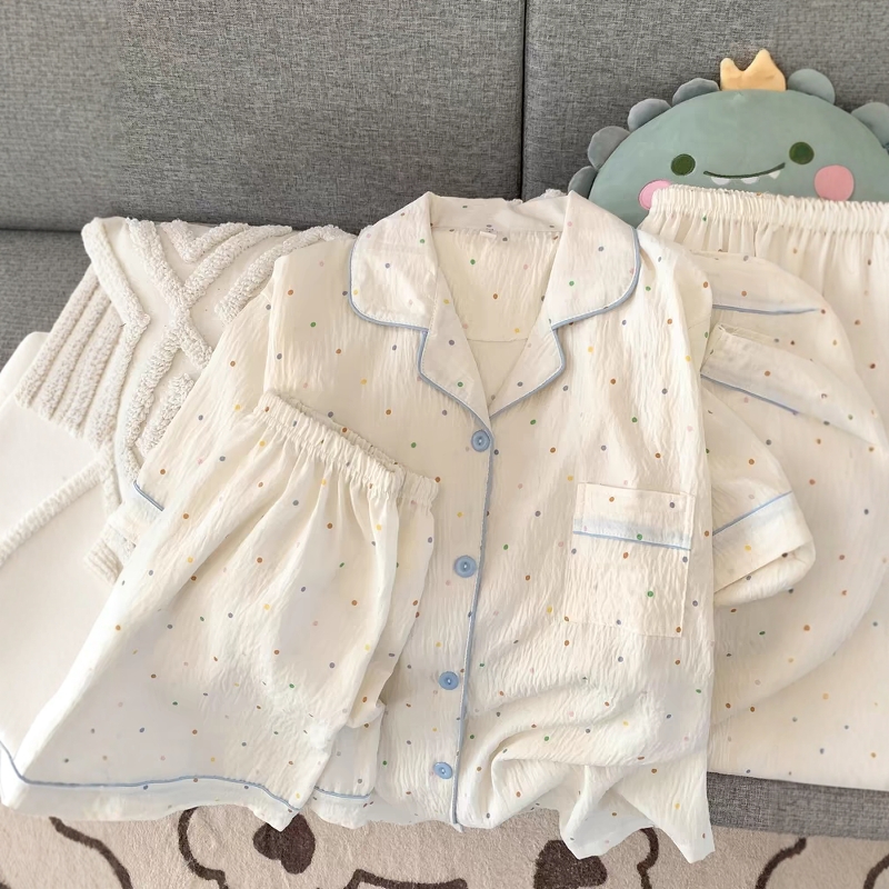 奶乎乎睡衣女春夏云朵纯棉三件套