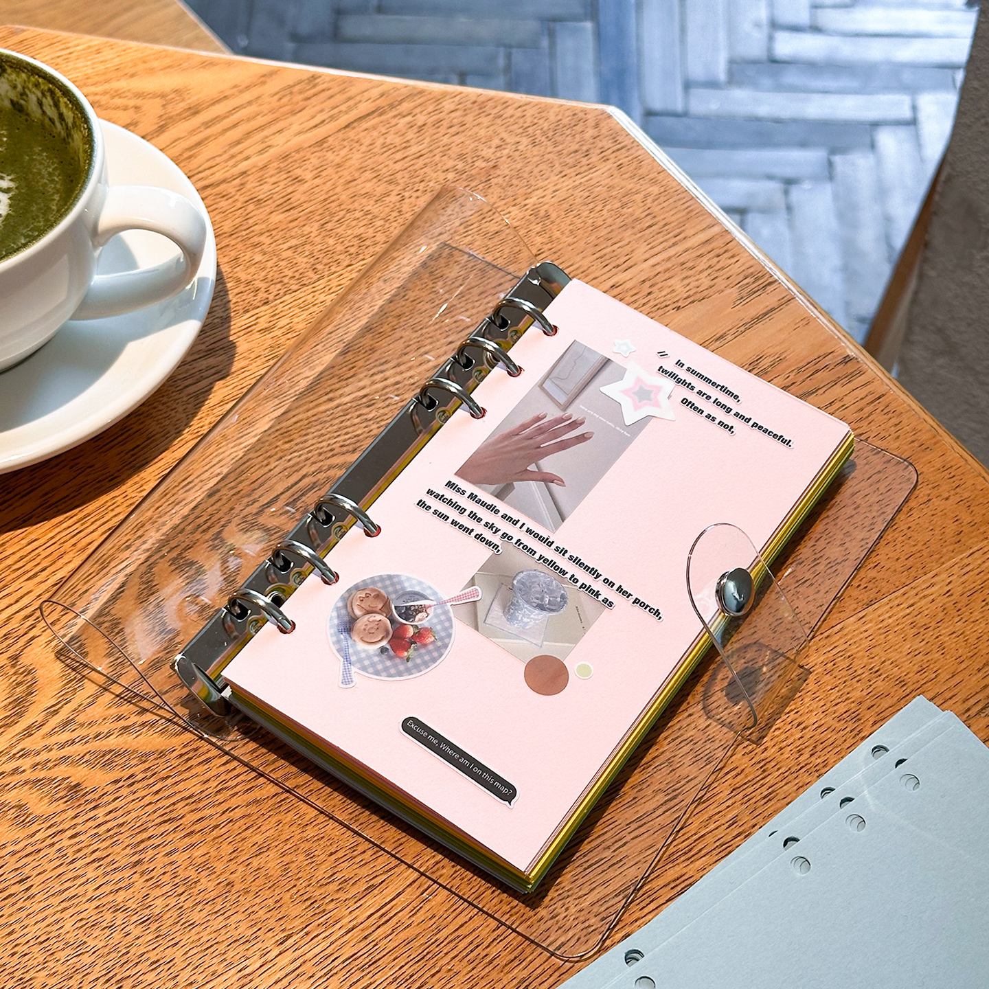 pvc手账本外壳 透明可拆卸笔记本a6本子随身手账活页外壳记事本日记本透明封面按扣手帐日记本 不含内页