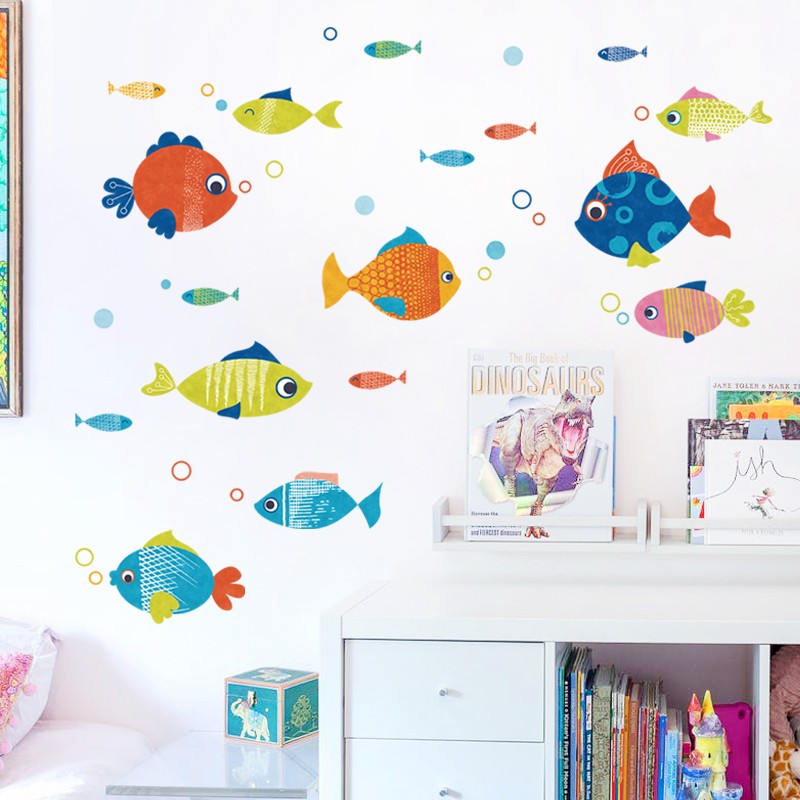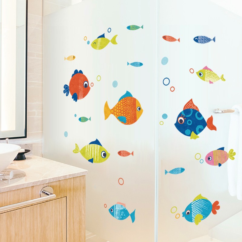 卡通鱼墙贴画儿童房卧p室墙纸自粘浴室厕所卫生间防水瓷砖贴纸装