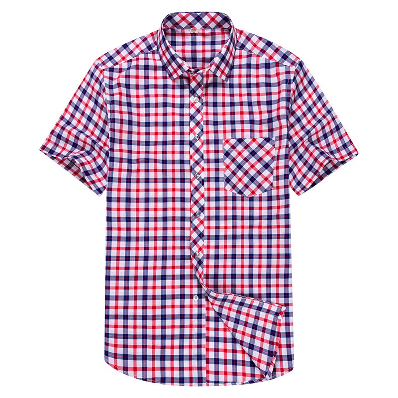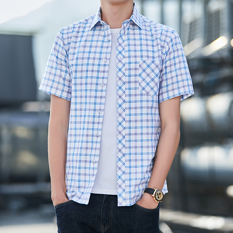 短袖格子衬衫男士夏季潮牌青年宽松休闲商务大码冰丝白棉薄tT上衣