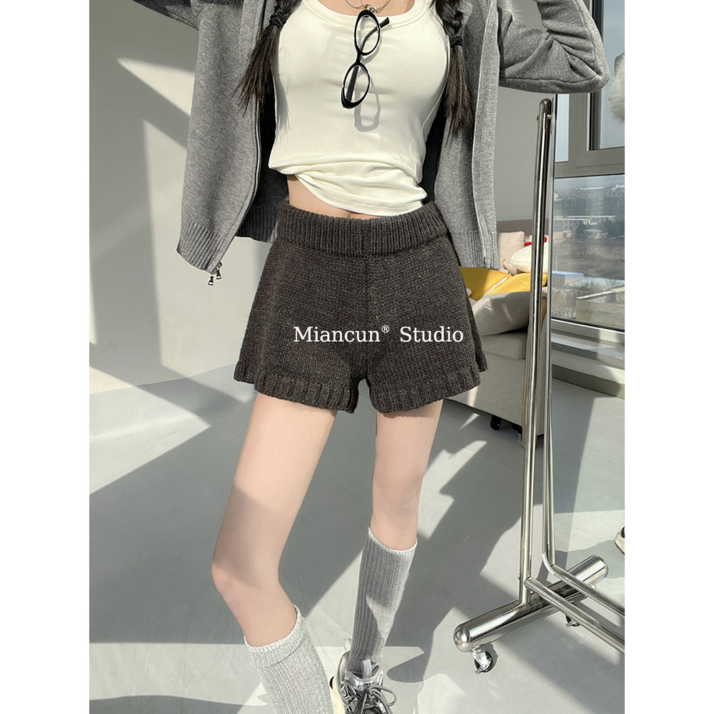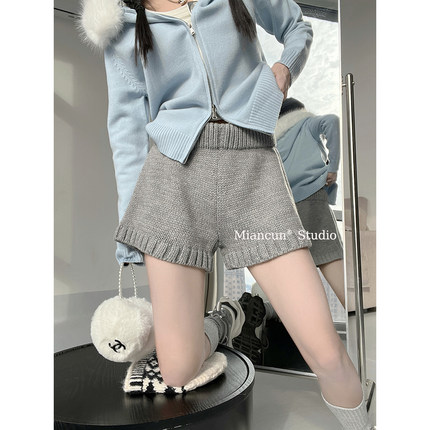 MICN韩系针织短裤女秋冬新款ins博主风宽松显腿长叠穿毛线休闲裤