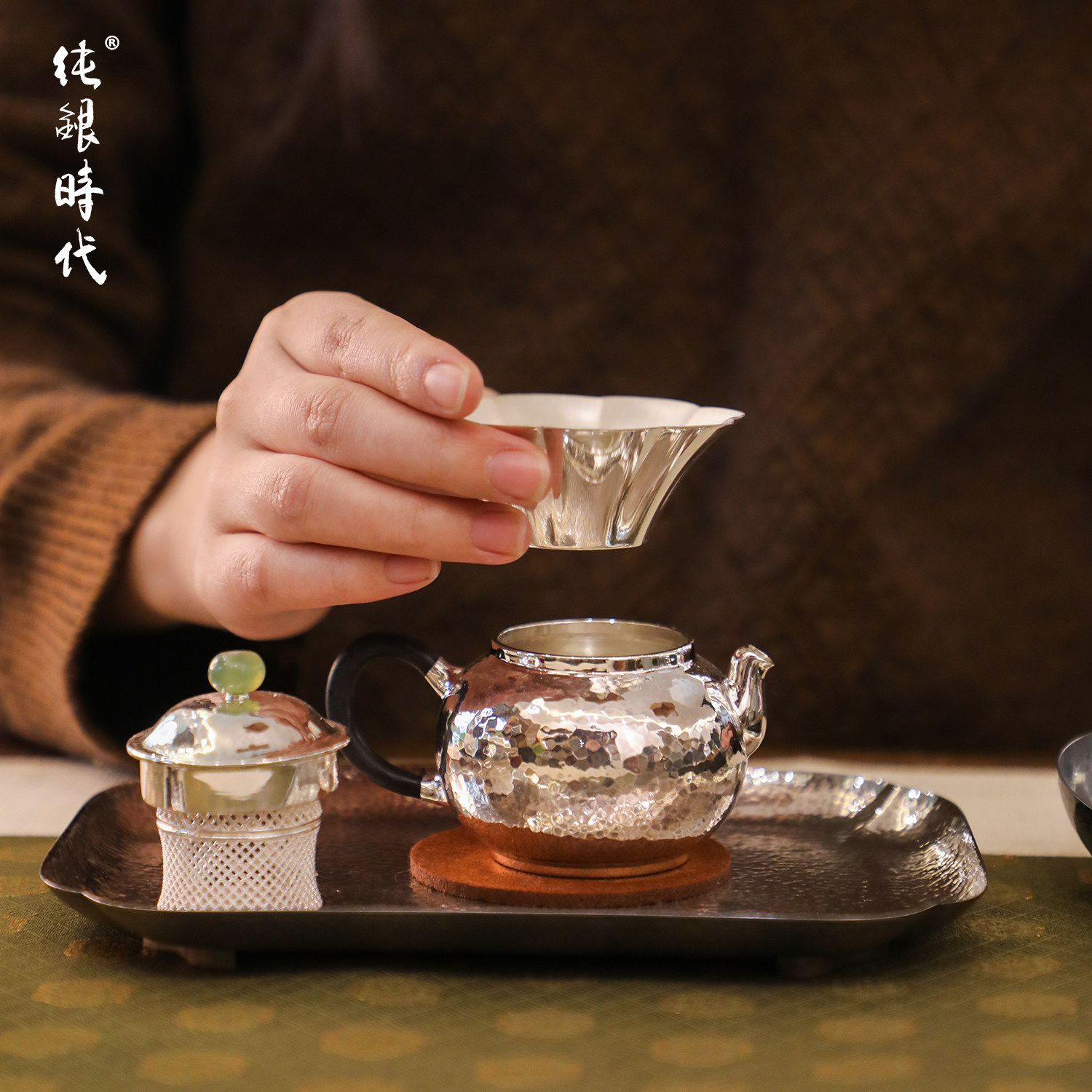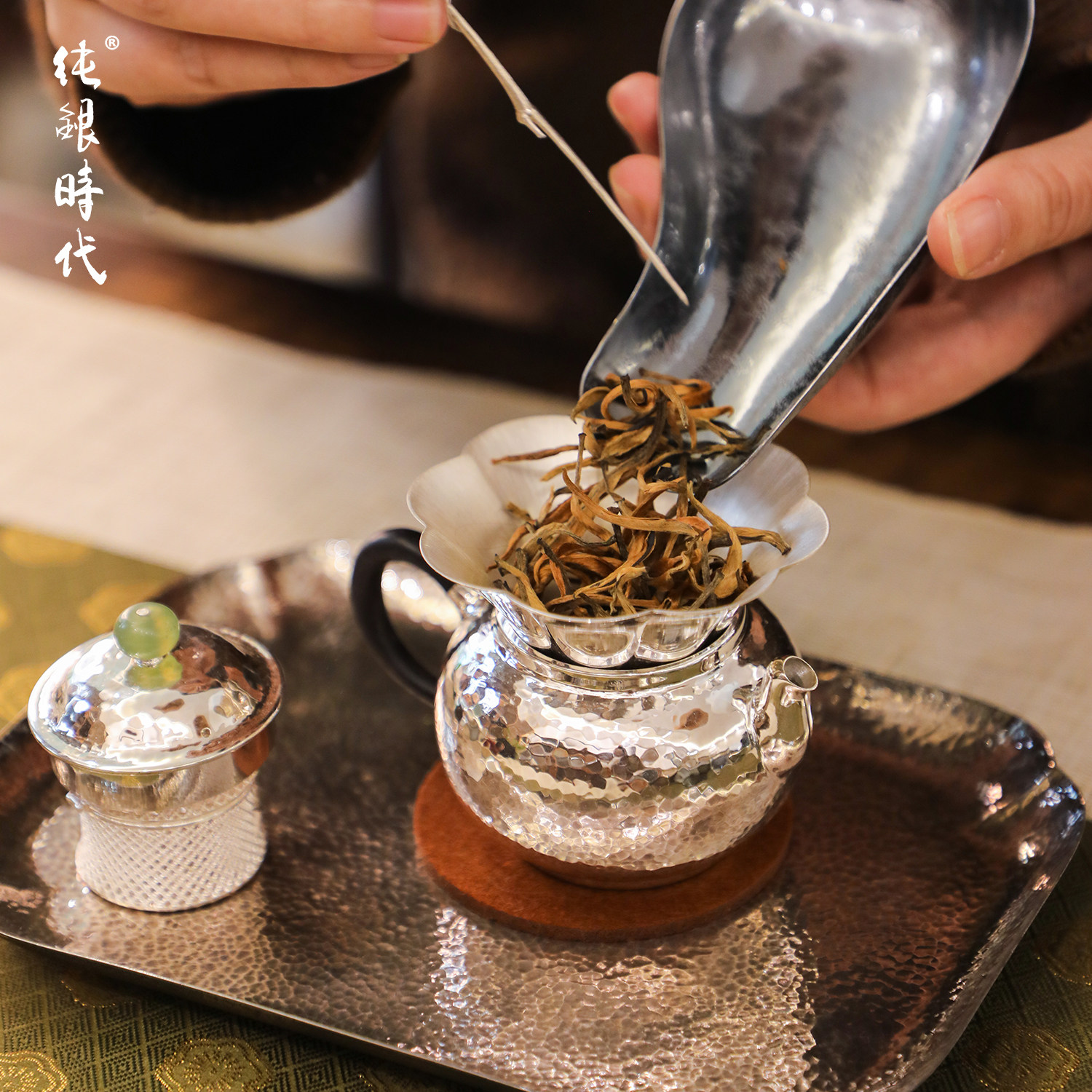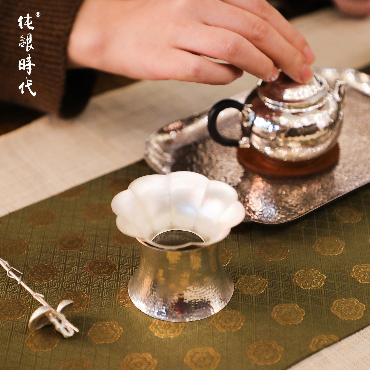 纯银时代 花瓣茶通投茶器足银999纯手工茶漏斗纯银茶道零配文创