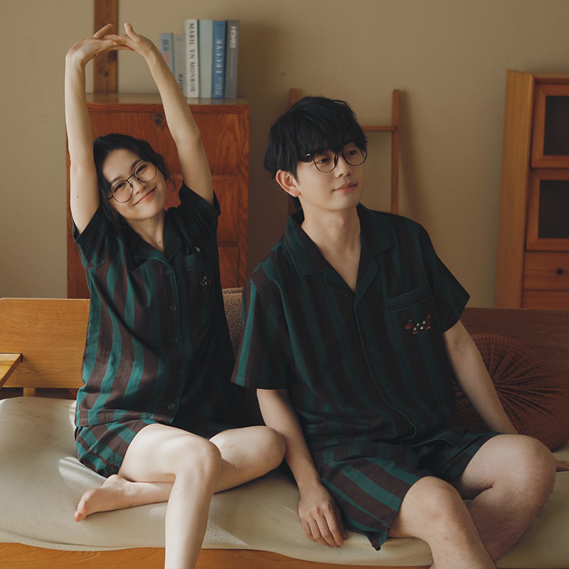 2025春夏季情侣翻领女士纯棉睡衣清理短袖短裤套装大码家居服大码