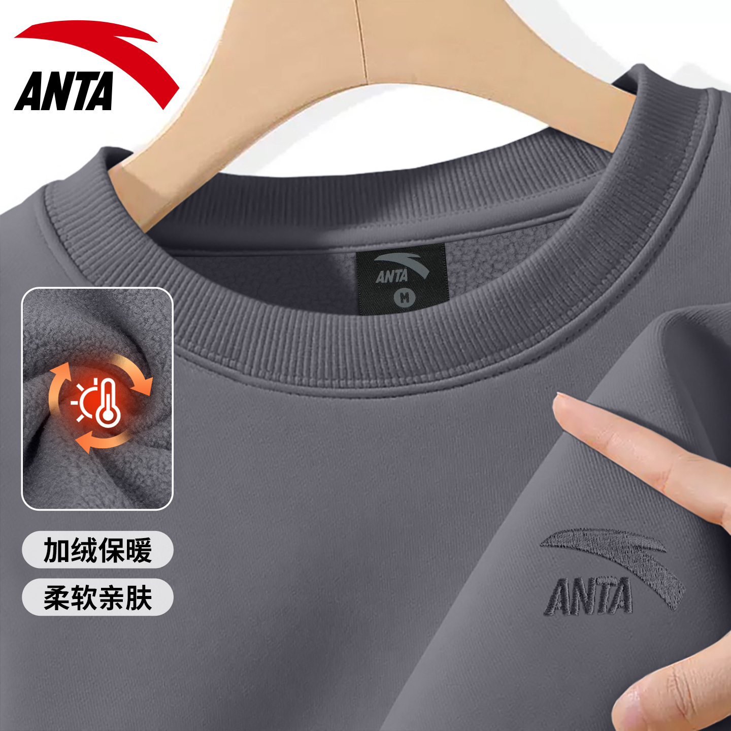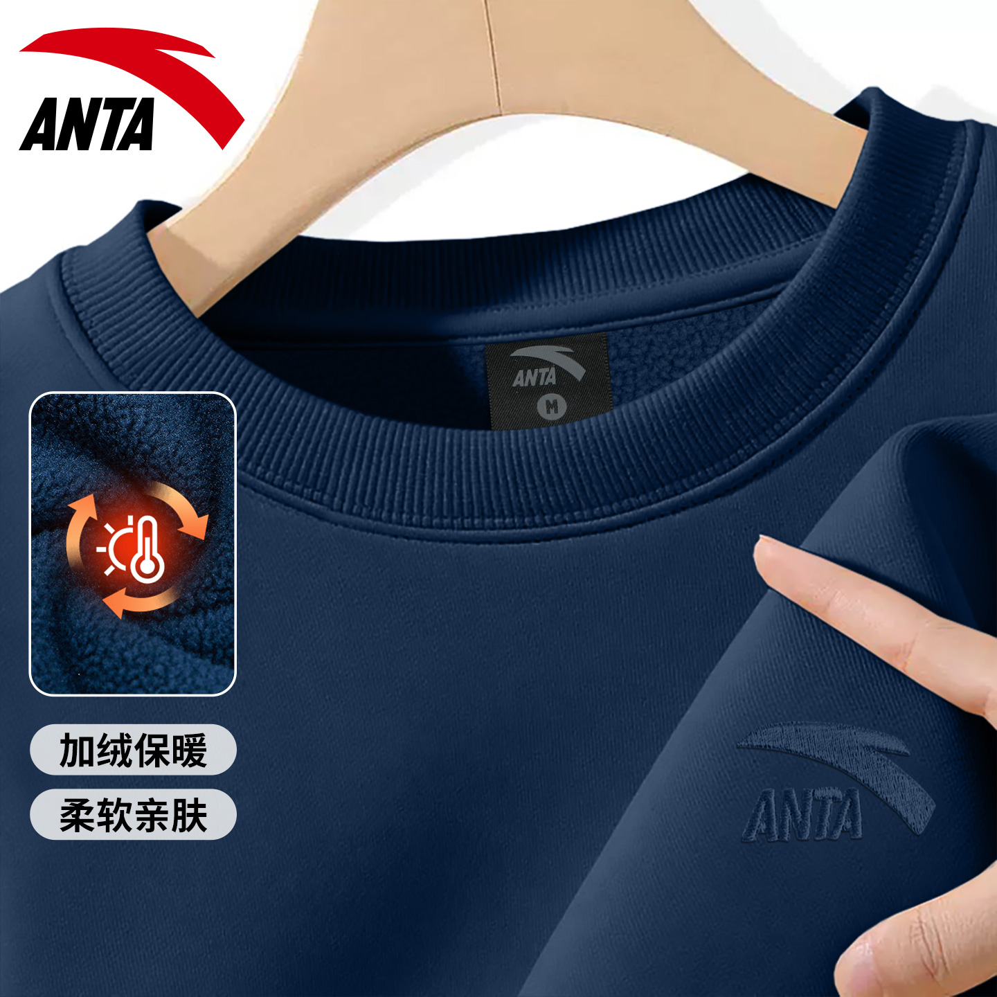 安踏卫衣男女同款秋冬季加绒保暖加厚长袖T恤宽松潮流内搭套头衫