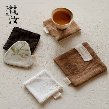 梵汝 日式棉麻布艺杯垫原创简约高级感小茶垫茶桌隔热垫茶道配件