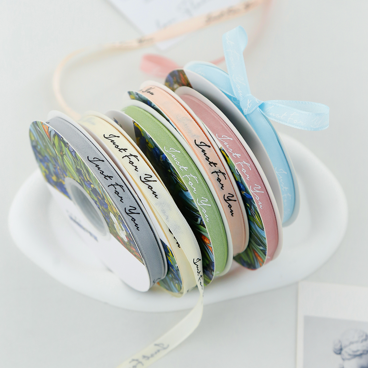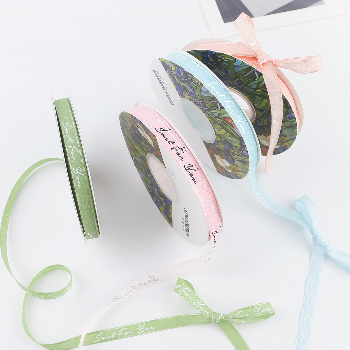 七夕鲜花丝带花束花艺缎带麻纱边罗手写JUST蛋糕盒绑带礼物盒彩带