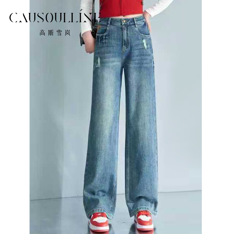 高斯雪岚春装新款复古文艺垂感牛仔裤长款休闲百搭阔腿裤女