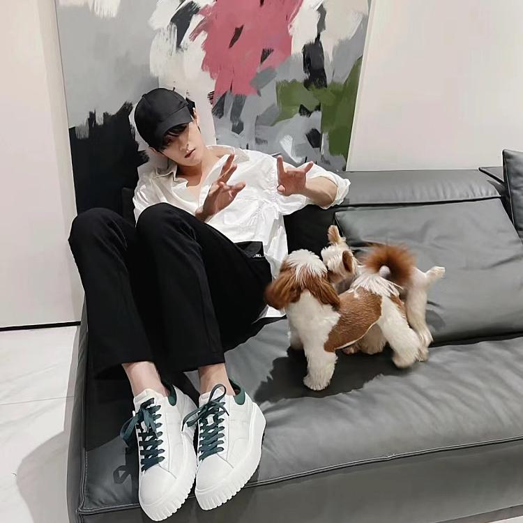 H家饼干鞋潮鞋檀健次情侣款真皮新款H-STRIPES拼色厚底小白鞋板鞋