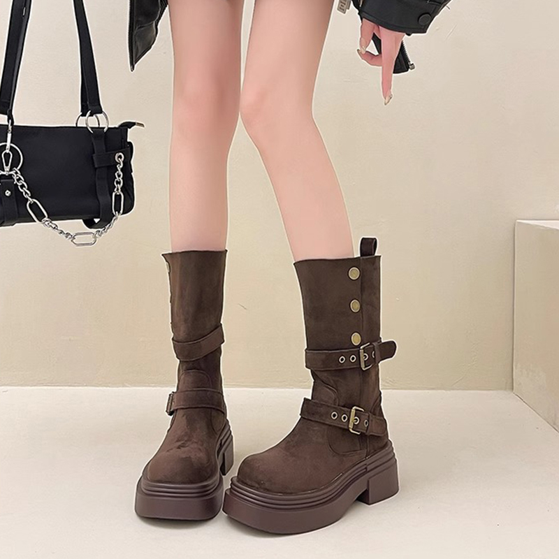 时尚百搭马丁靴子女2025年秋冬季新款厚底增高小个子短靴黑色短筒