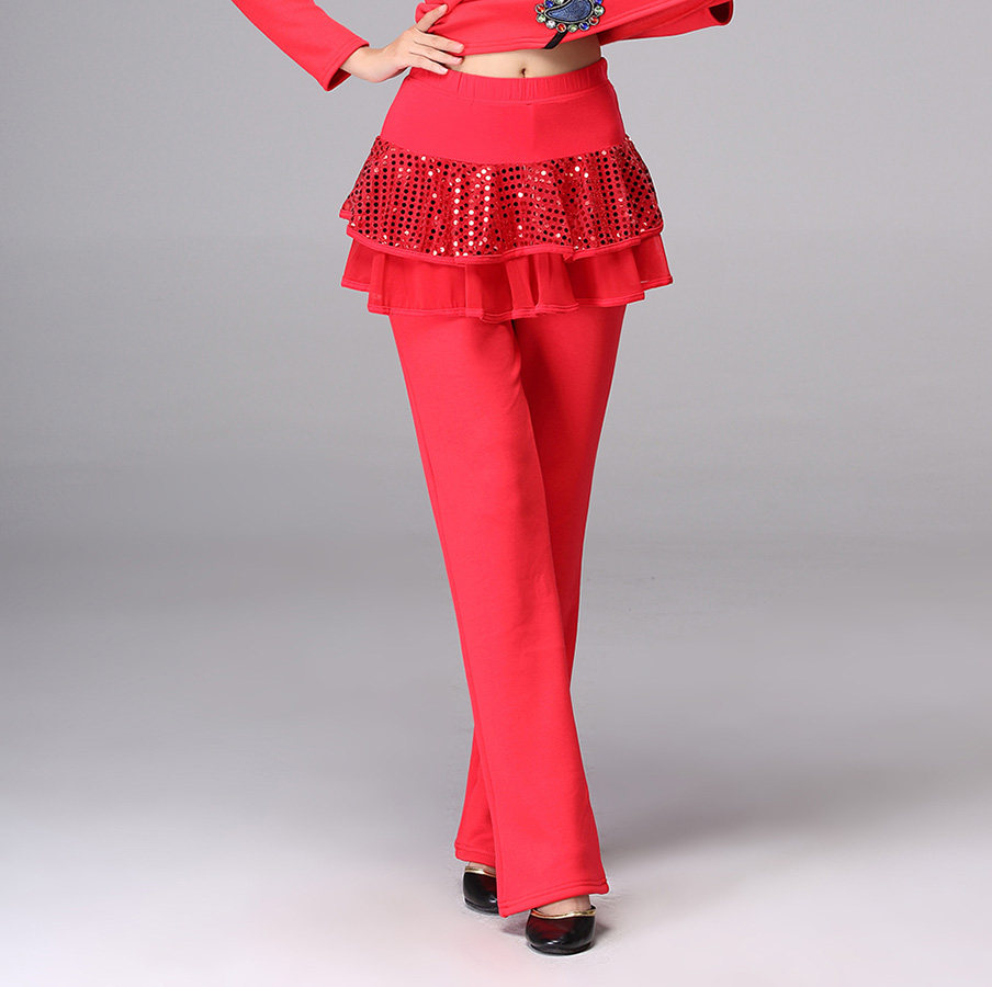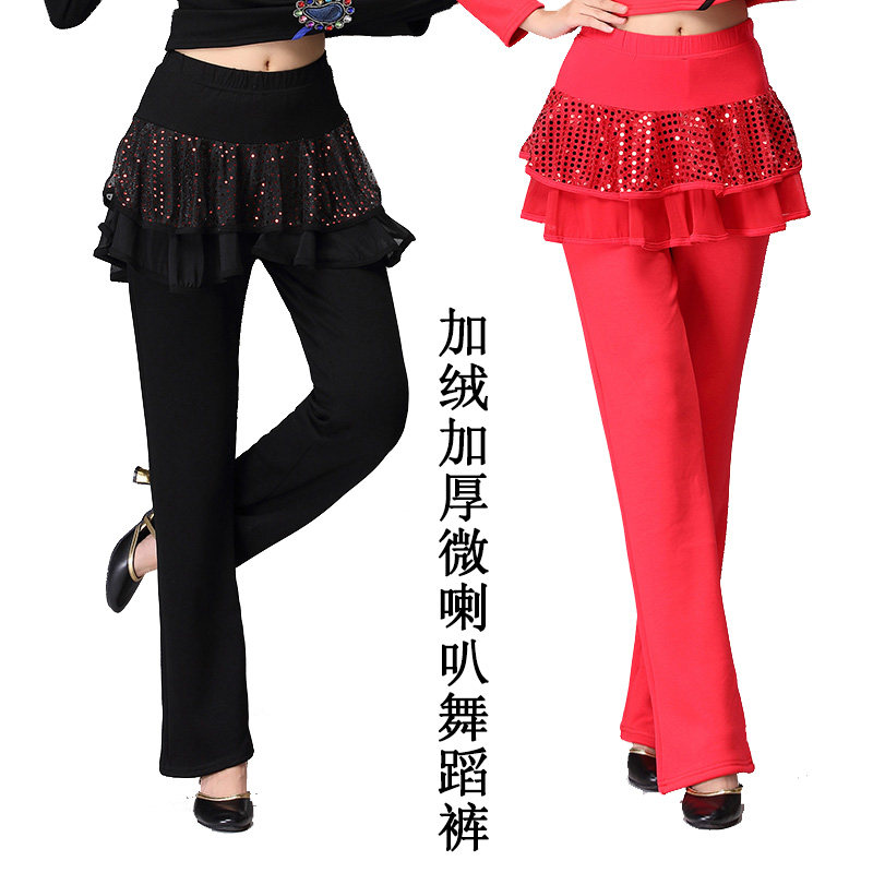 冬季加厚加绒广场舞服装新款裙裤亮片拉丁舞裤子舞蹈裤裙长裤跳舞