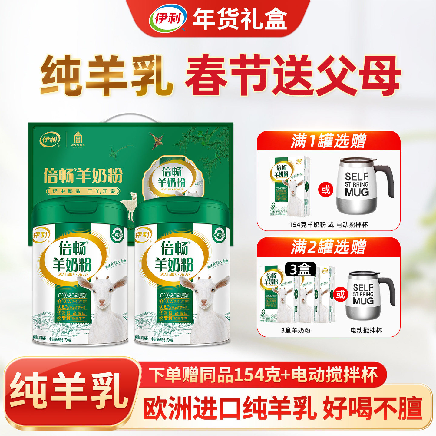 伊利倍畅羊奶粉中老年女士儿童进口奶源700g罐全家营养高钙纯羊奶