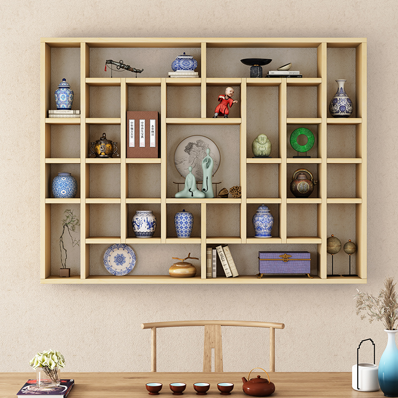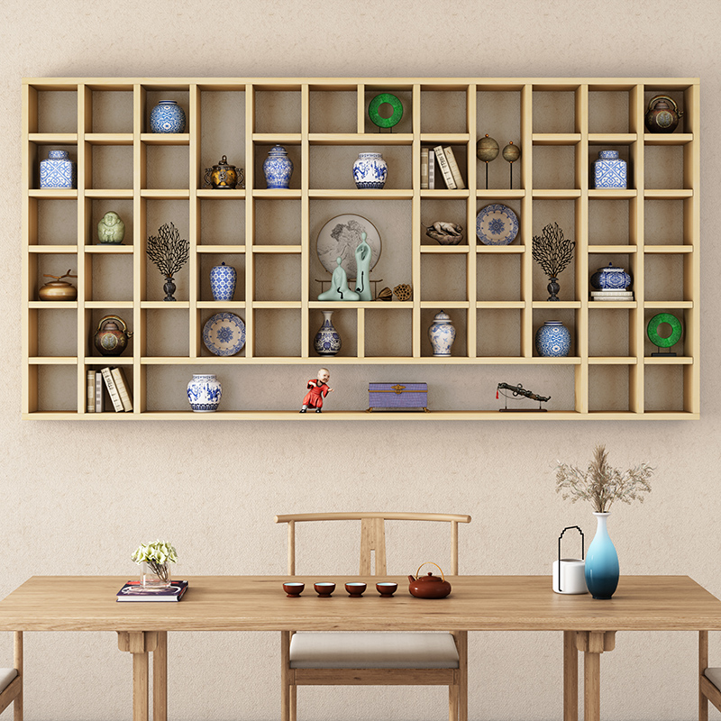 定制实木格子架壁挂茶壶茶杯展示架博古架多宝阁置物架灯光木格子
