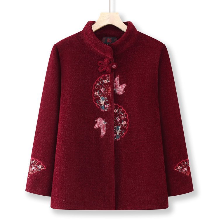 奶奶毛呢外套加绒加厚中老年人冬装女妈妈衣服保暖60多岁70老太太
