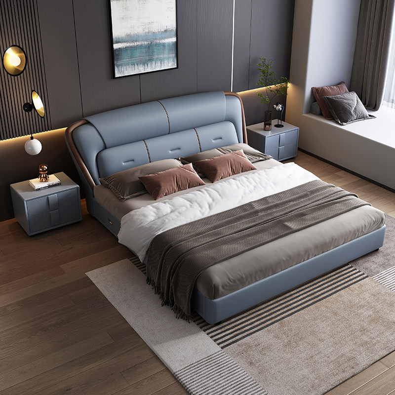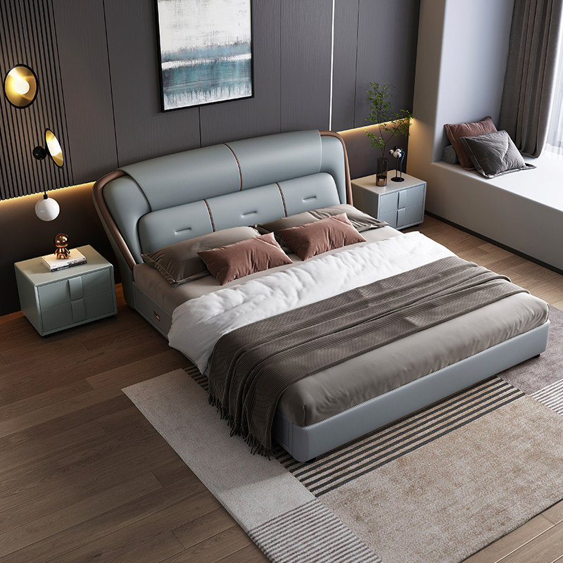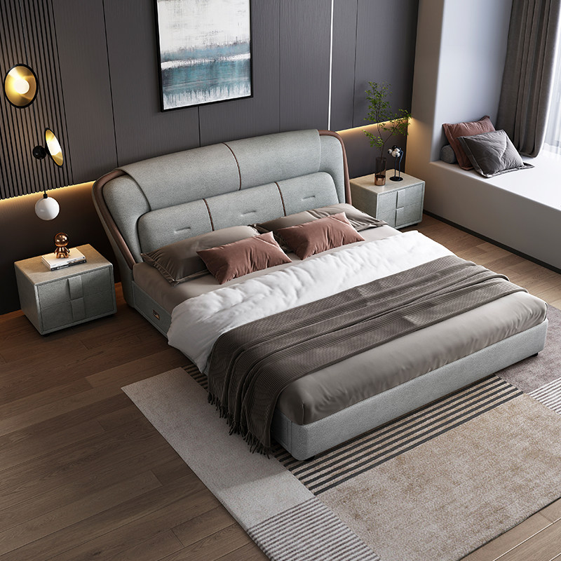 政府补贴真皮床简约现代科技布双人床轻奢主卧室实木软包储物婚床