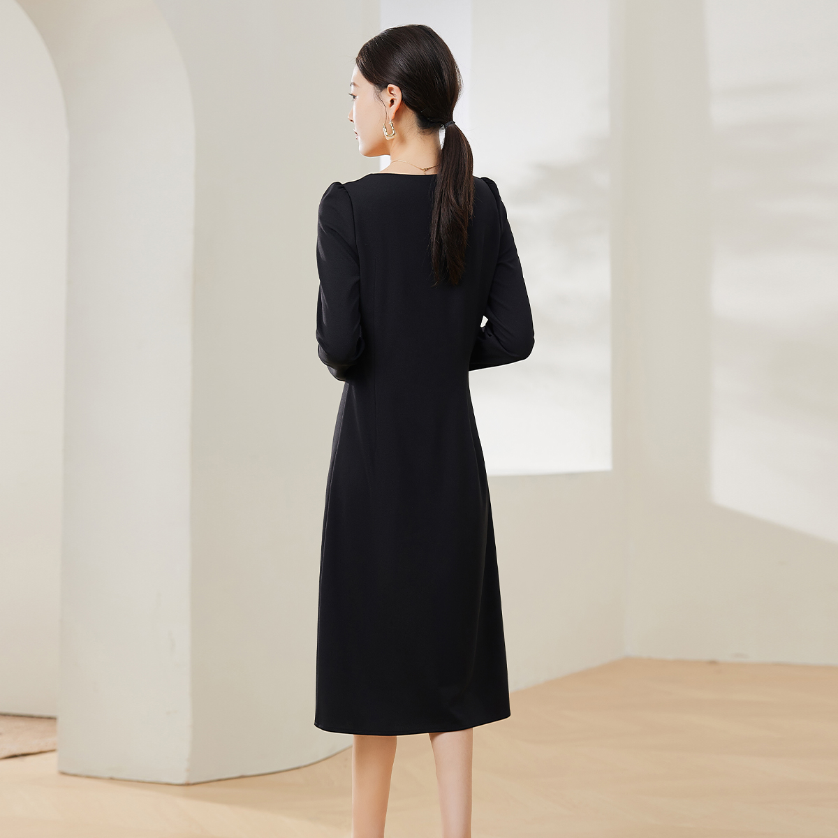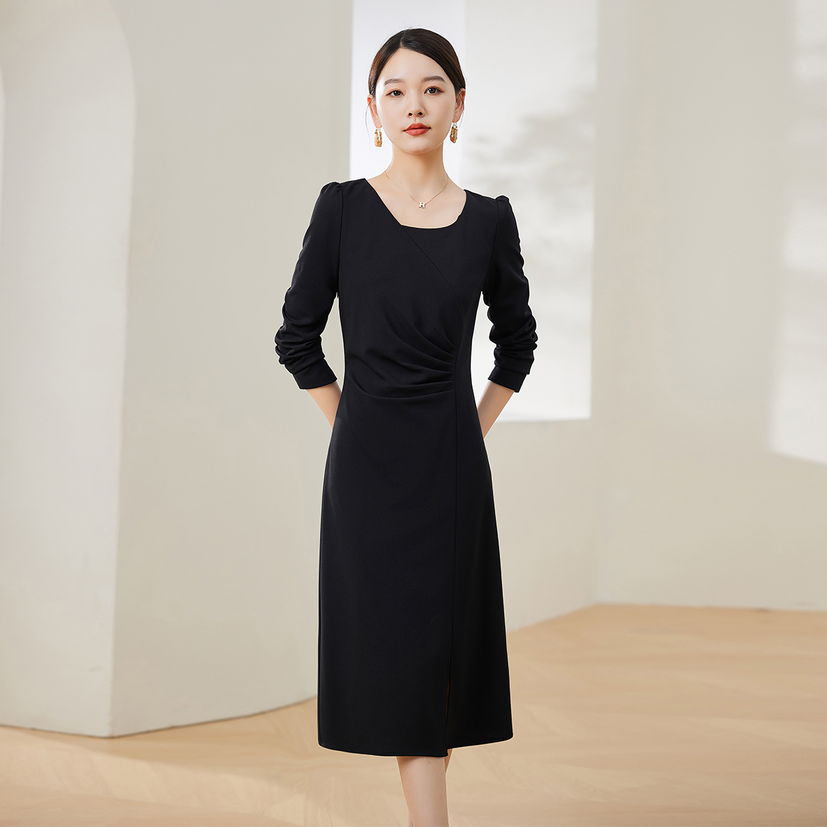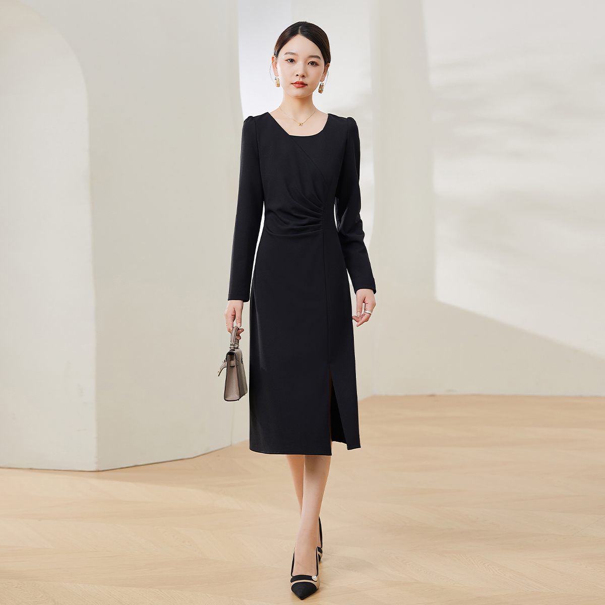 法式高级感长袖连衣裙女2025秋季爆款气质名媛修身显瘦中长裙