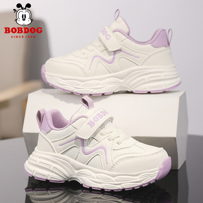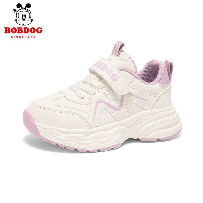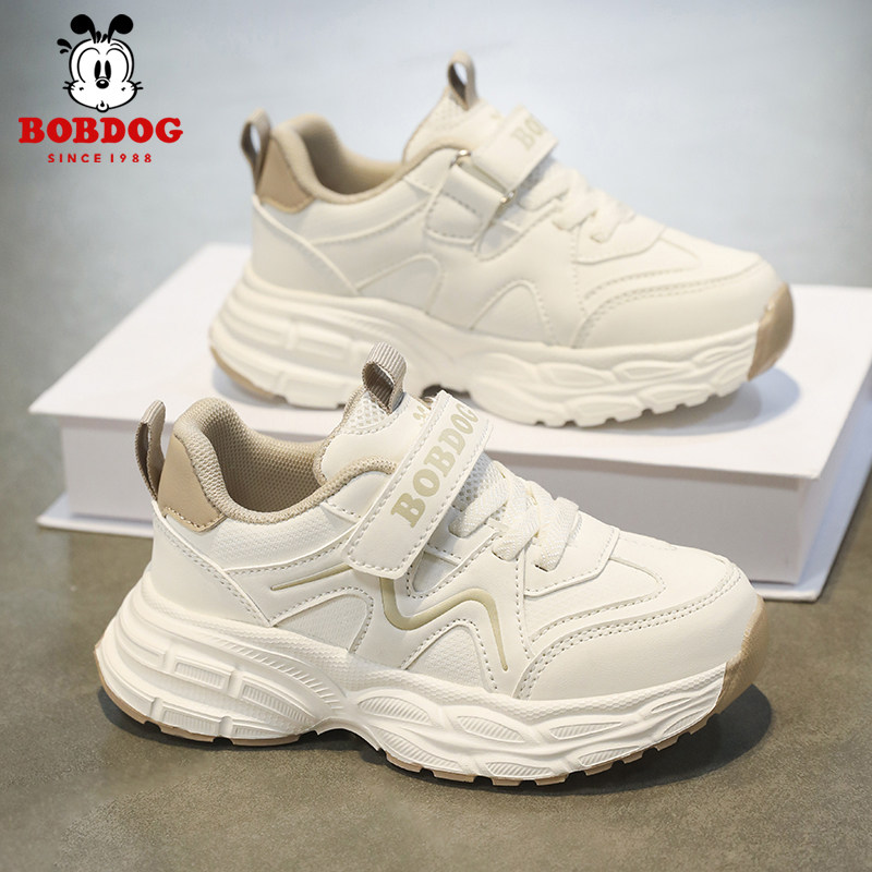 巴布豆童鞋女童运动鞋2025春秋新款皮面防水儿童小白鞋女孩老爹鞋