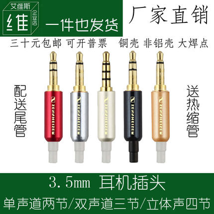DIY维修带麦原音无损3.5线插头 3.5MM耳机手机电脑话筒2节3节4节
