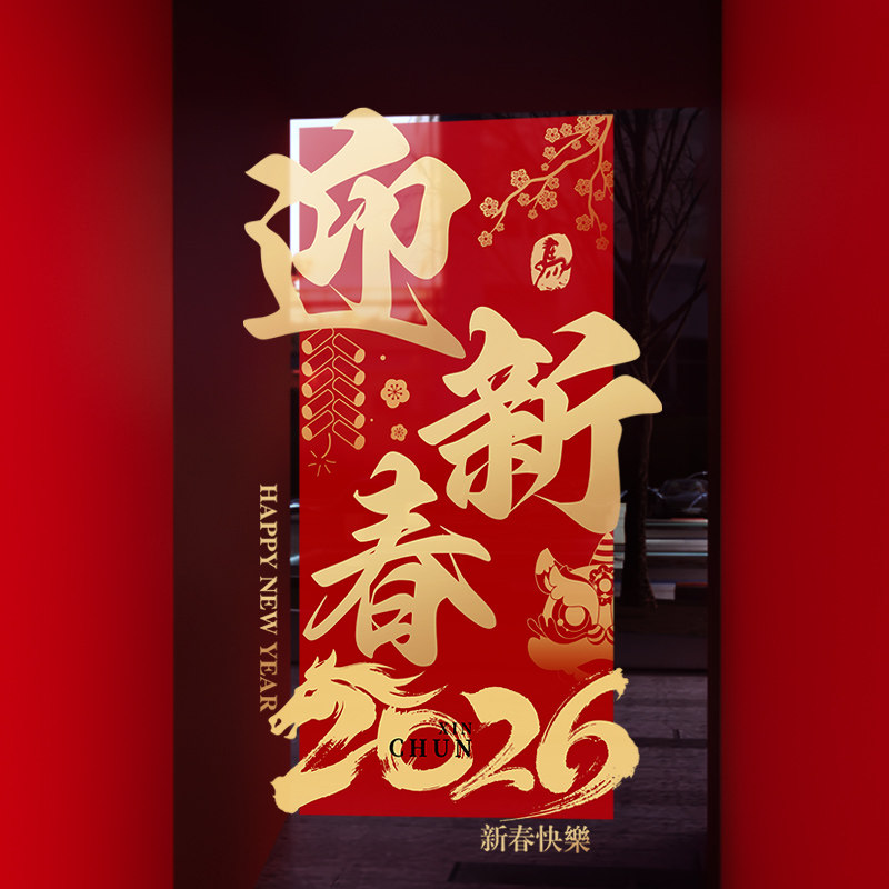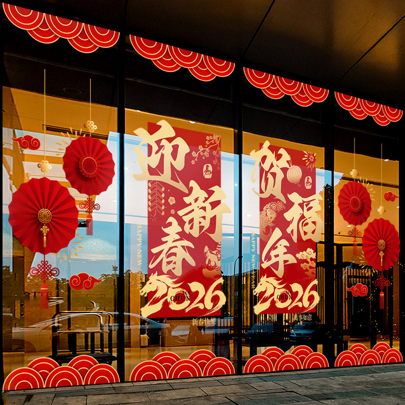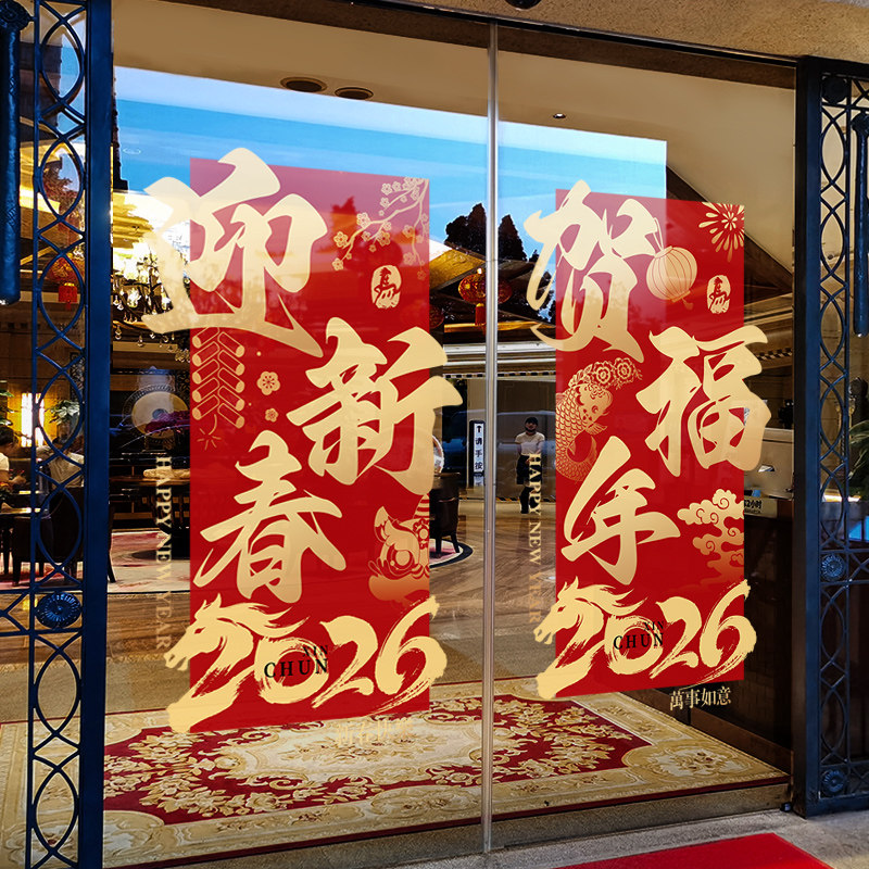 新年装饰窗贴马年春节中国红对联窗花2026过年橱窗静电玻璃门贴纸
