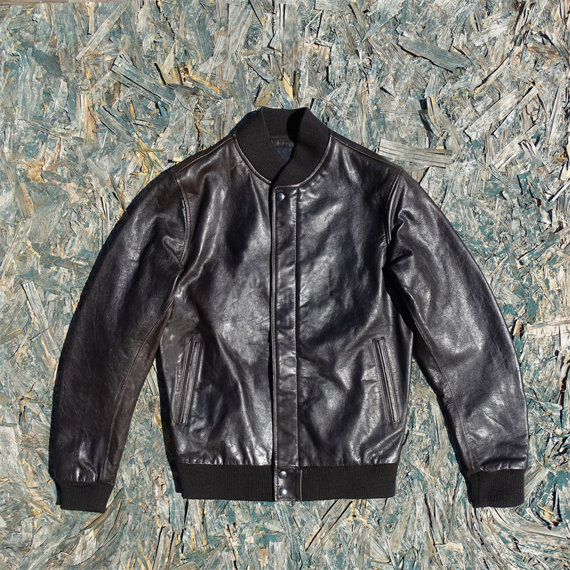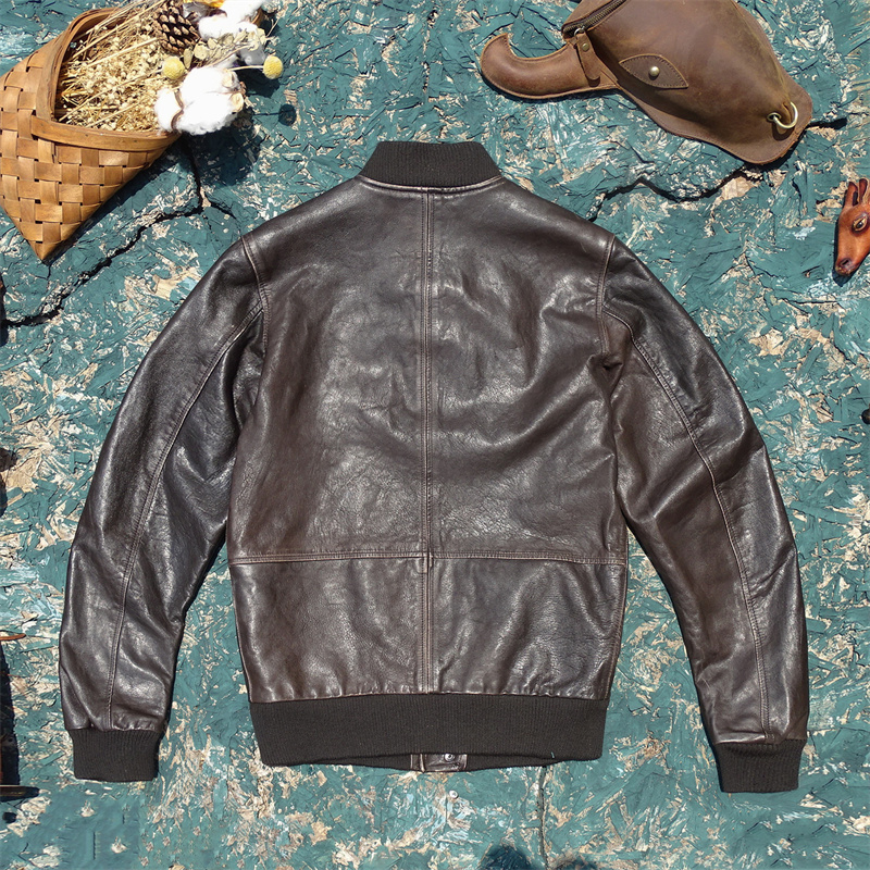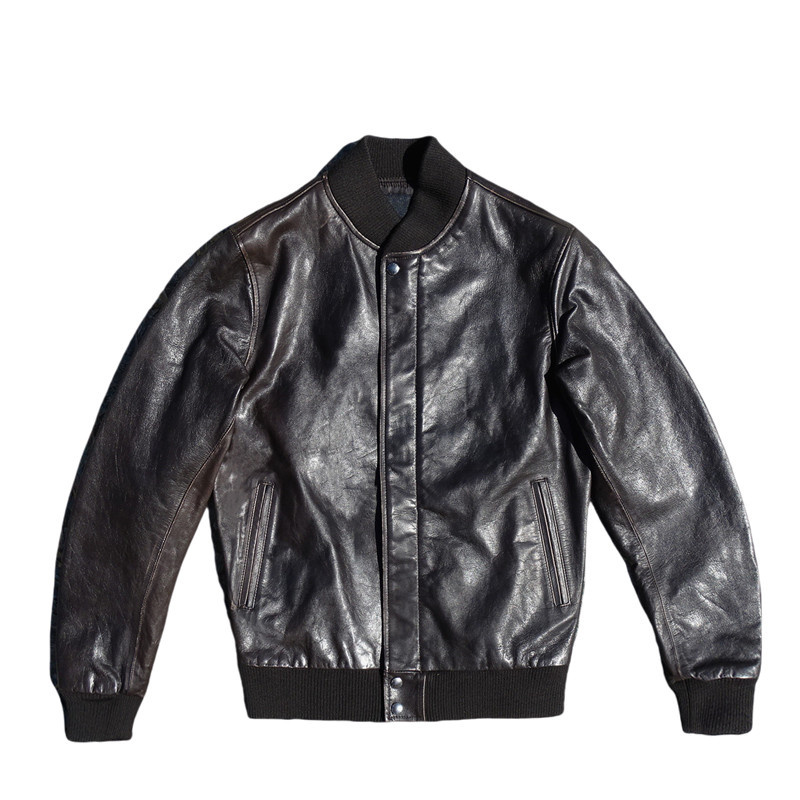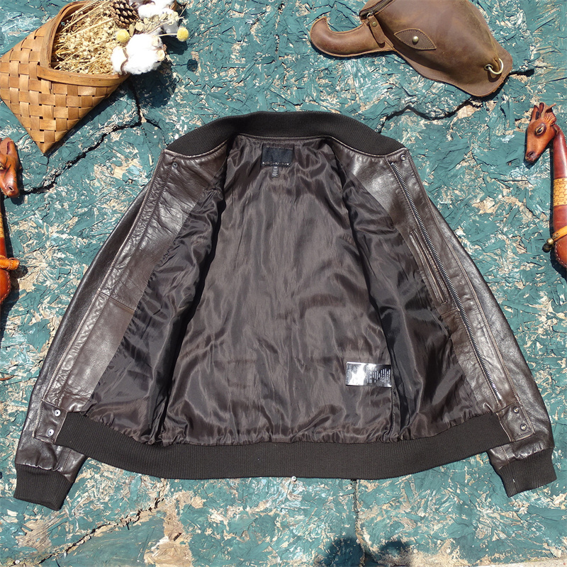 出口米国600刀!意大利Monte茶芯牛皮真皮皮衣男士擦色做旧棒球服