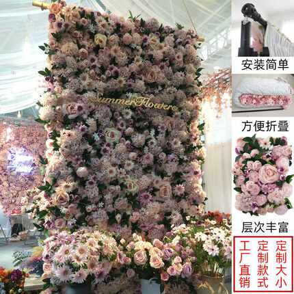 夏花仿真花玫瑰花墙网红背景墙布款绢花墙门店装饰布底森系花墙