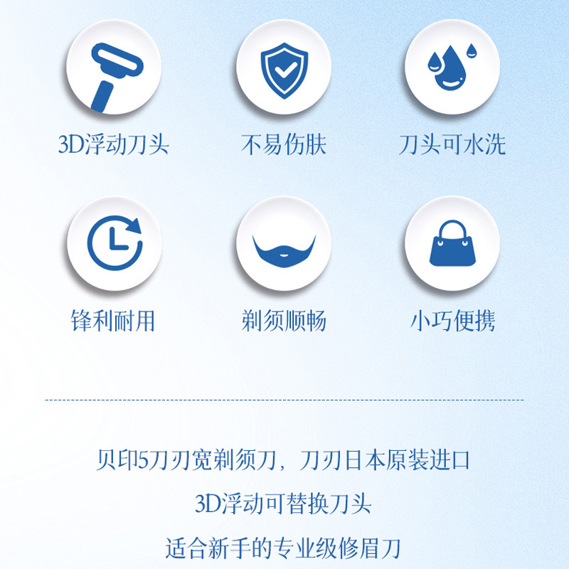 kai/贝印日本进口男士敏感肌五层刀刃手动剃须刀刮胡刮毛刀架刀头