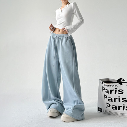 蓝色香蕉卫裤女2026春季新款高个子加长裤阔腿弯刀爆款加绒运动裤