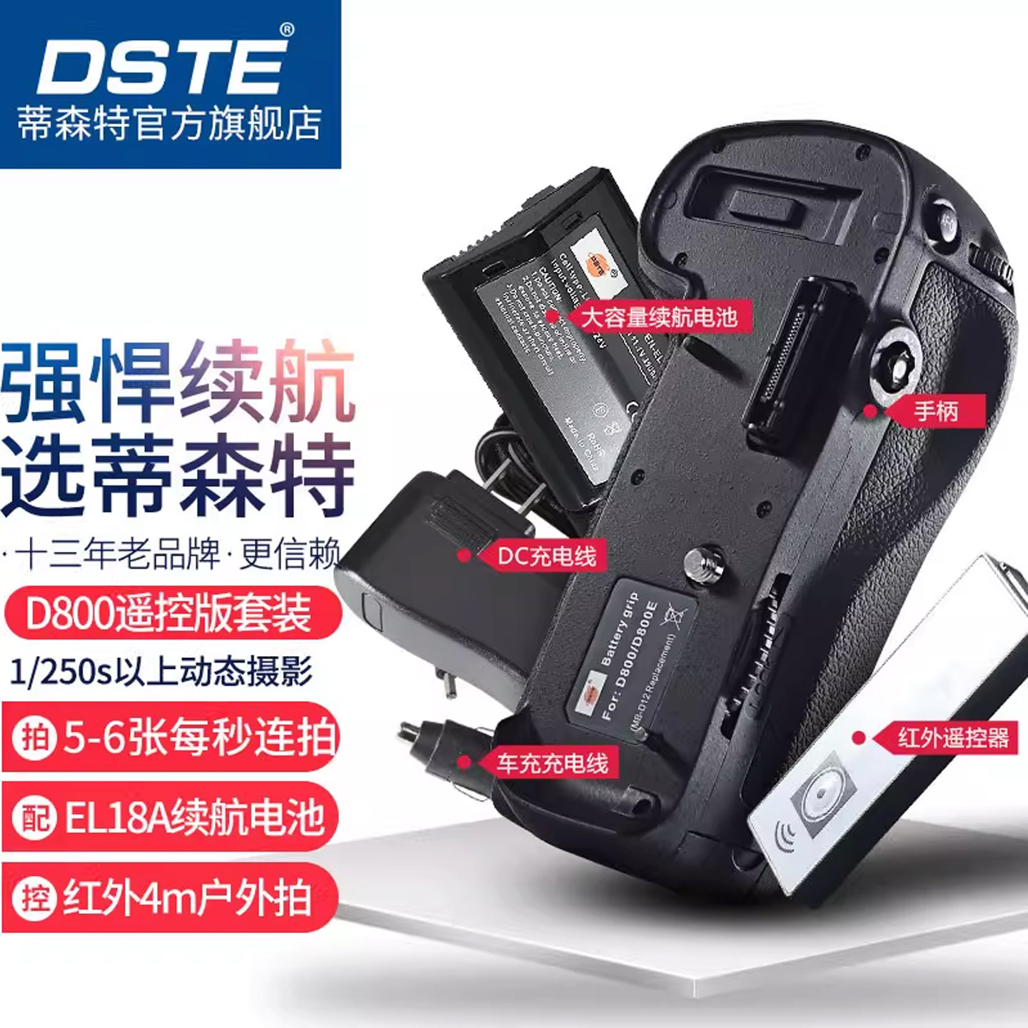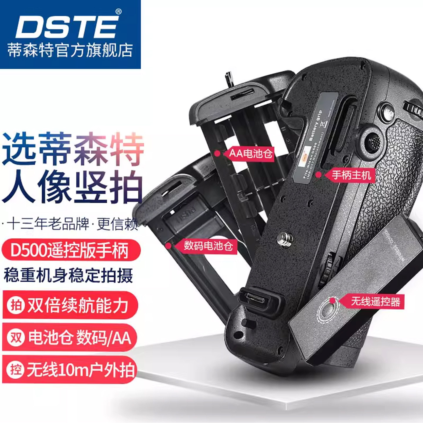 蒂森特MB-D12 MB-D17电池盒适用于尼康D810 D800 D800E D500单反相机竖拍电池供电手柄