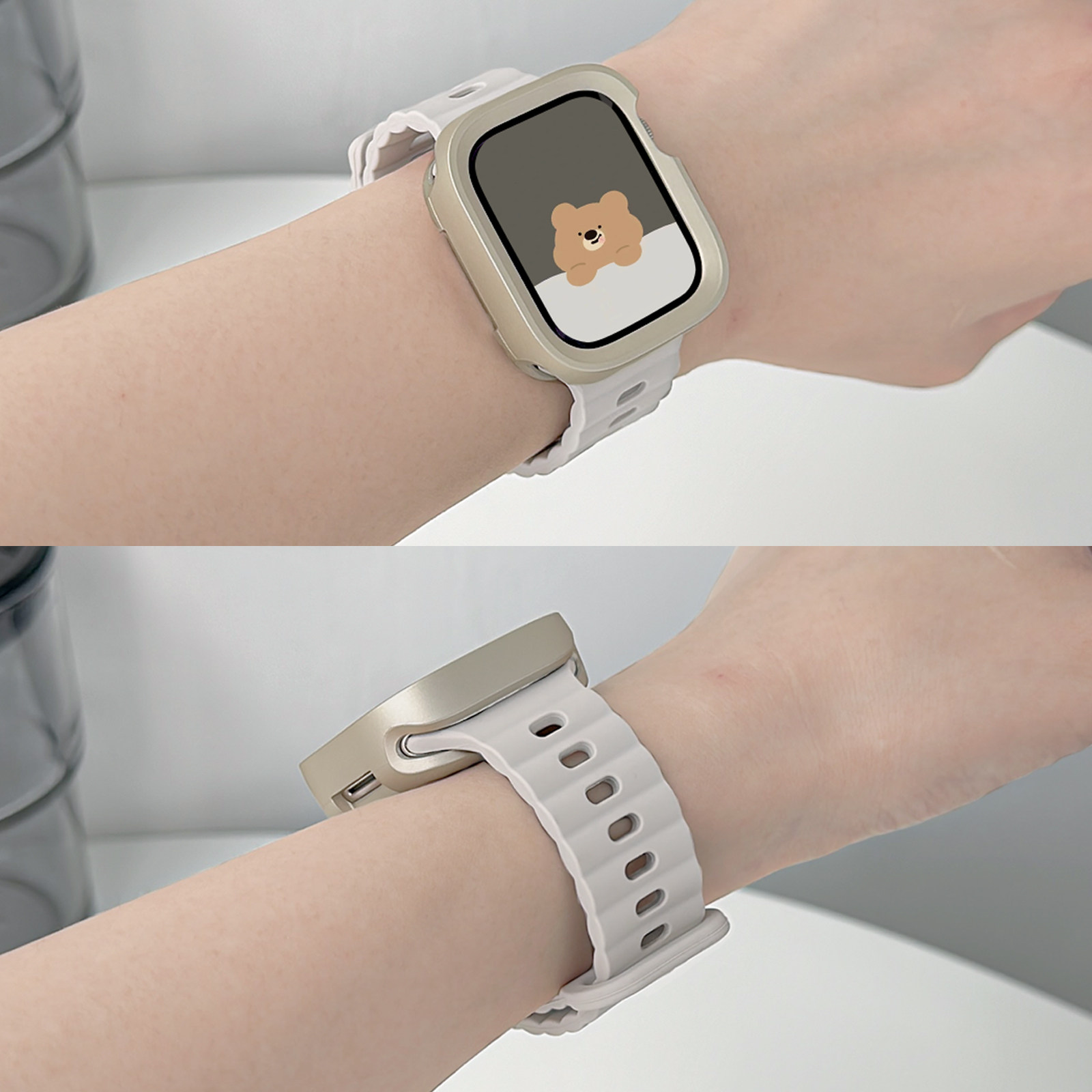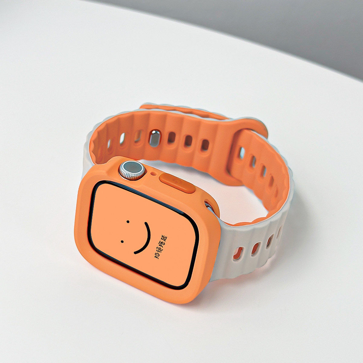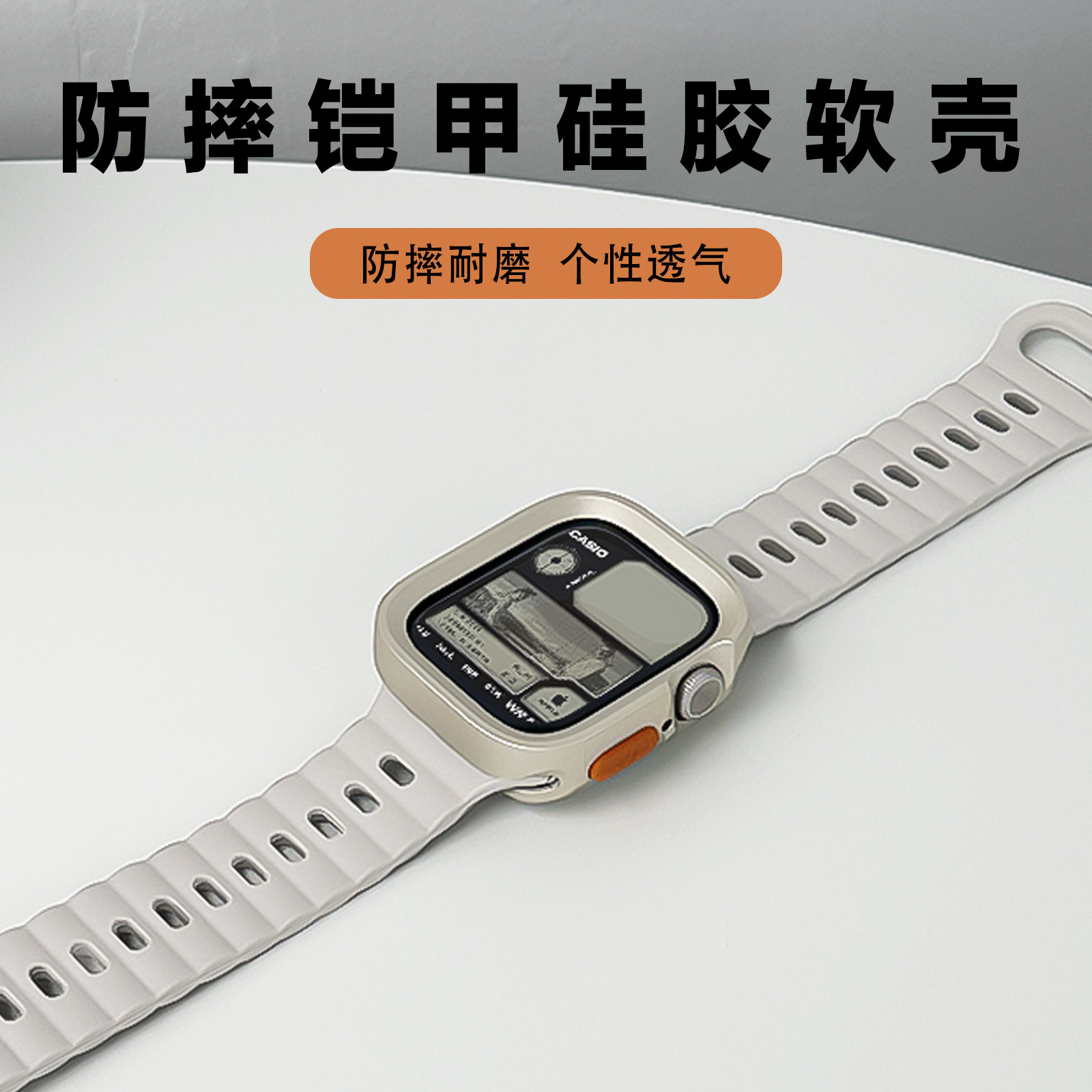 适用applewatch10/9防摔铠甲硅胶软壳iWatch876se创意渐变半包保护壳苹果手表S11个性耐磨透气男女磨砂边框壳