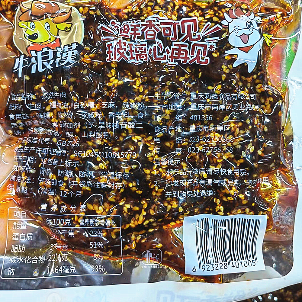 牛浪汉麻辣牛肉160gX5袋泡椒味孜然牛肉干重庆特产零食四川小吃