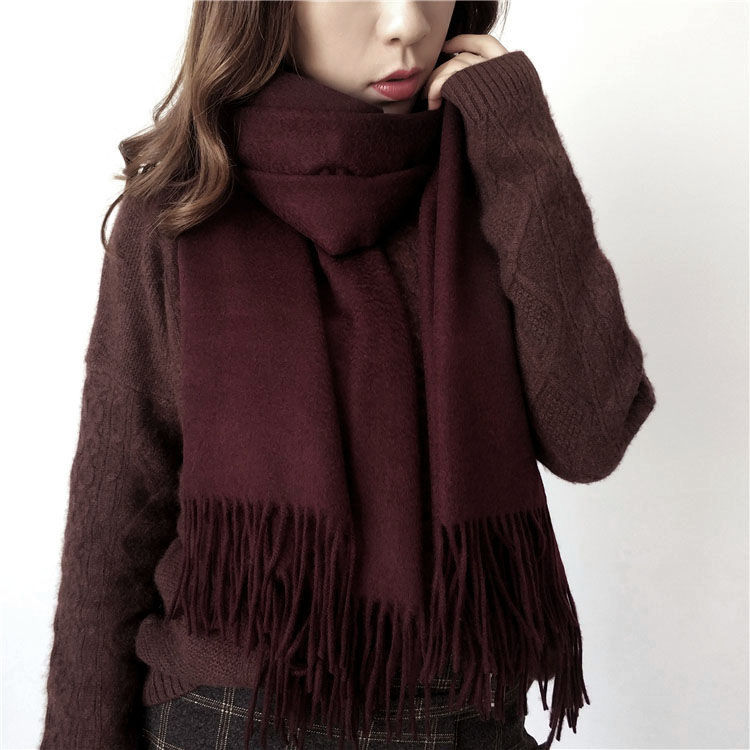 葡萄酒加厚款纯羊毛两用围巾披肩