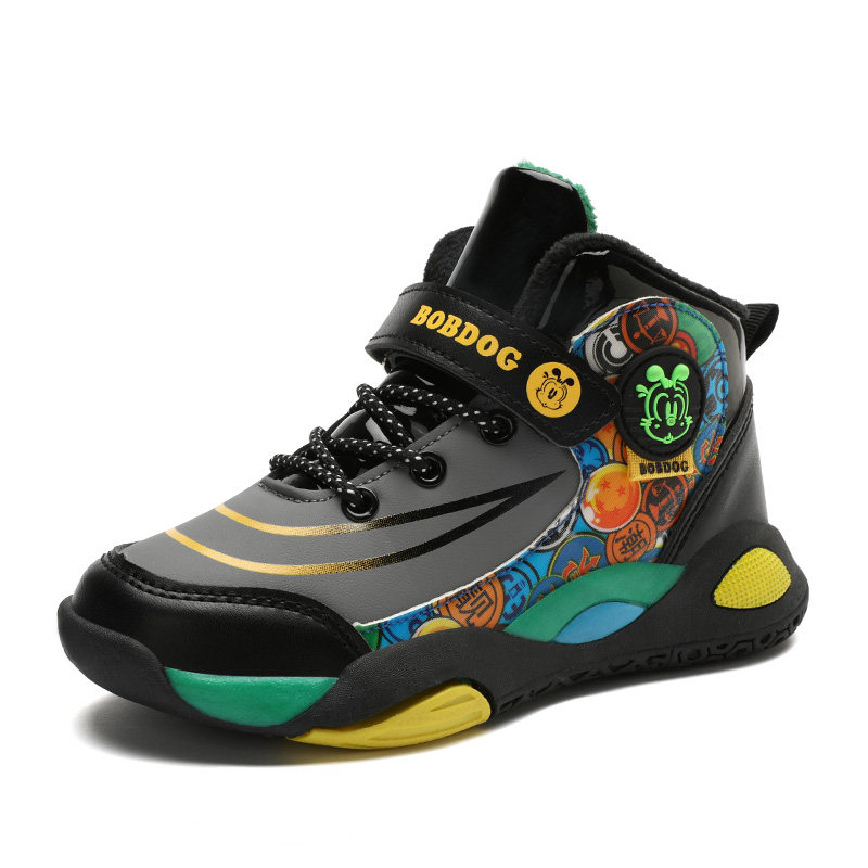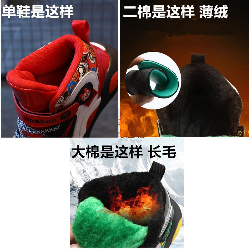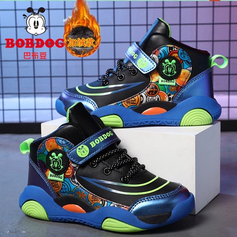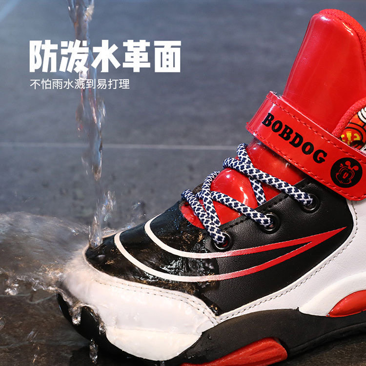 巴布豆男童鞋2025新款秋冬季皮面防水加绒保暖防滑篮球儿童运动鞋