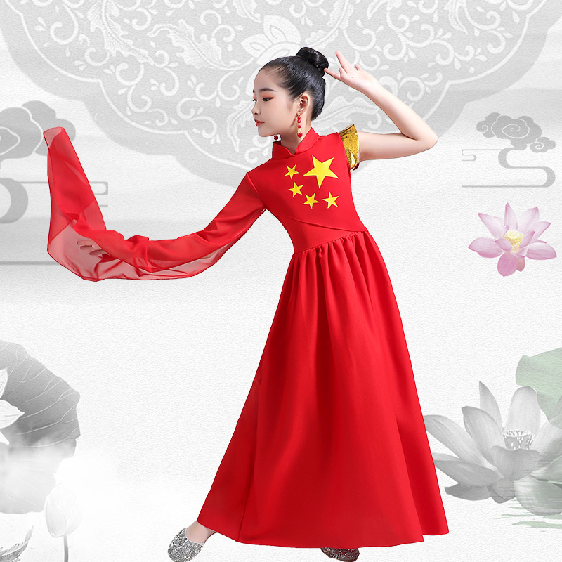 红歌儿童大合唱演出服女童爱国主题中小学生朗诵比赛舞台表演服装