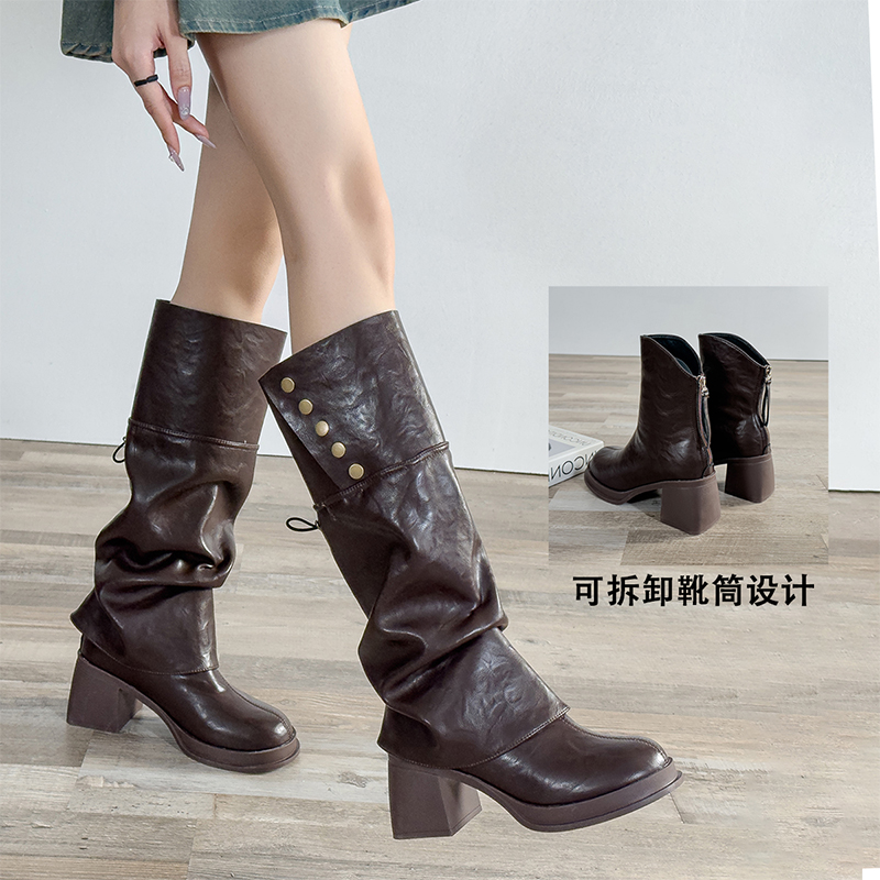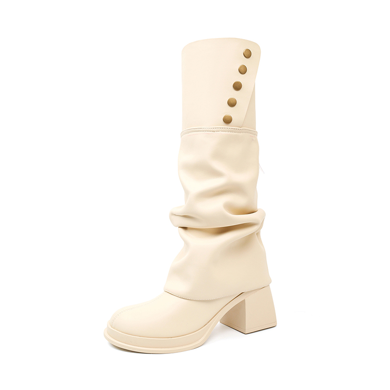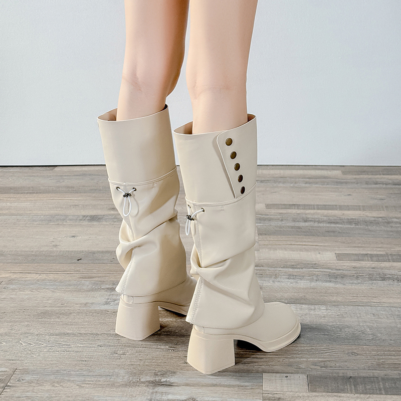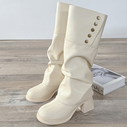 白色不过膝粗跟巨好看高筒长靴女2025新款春秋马丁靴瘦瘦靴骑士靴