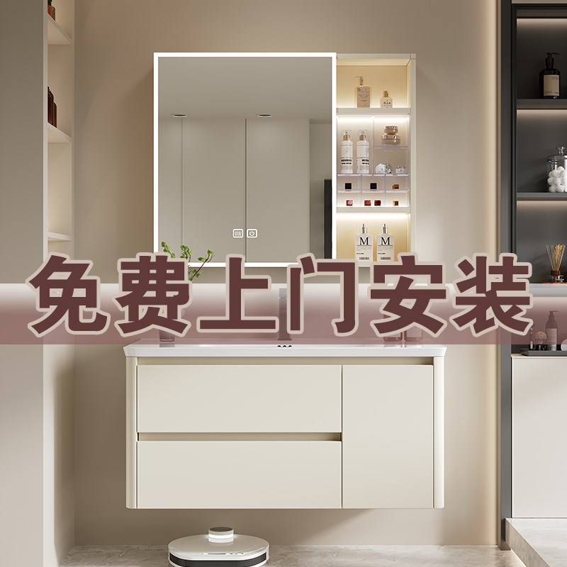奶油风蜂窝铝浴室柜组合卫生间洗手盆洗脸盆洗手台卫浴柜智能镜柜