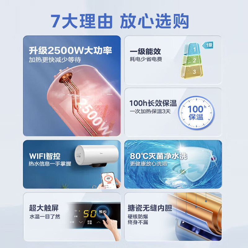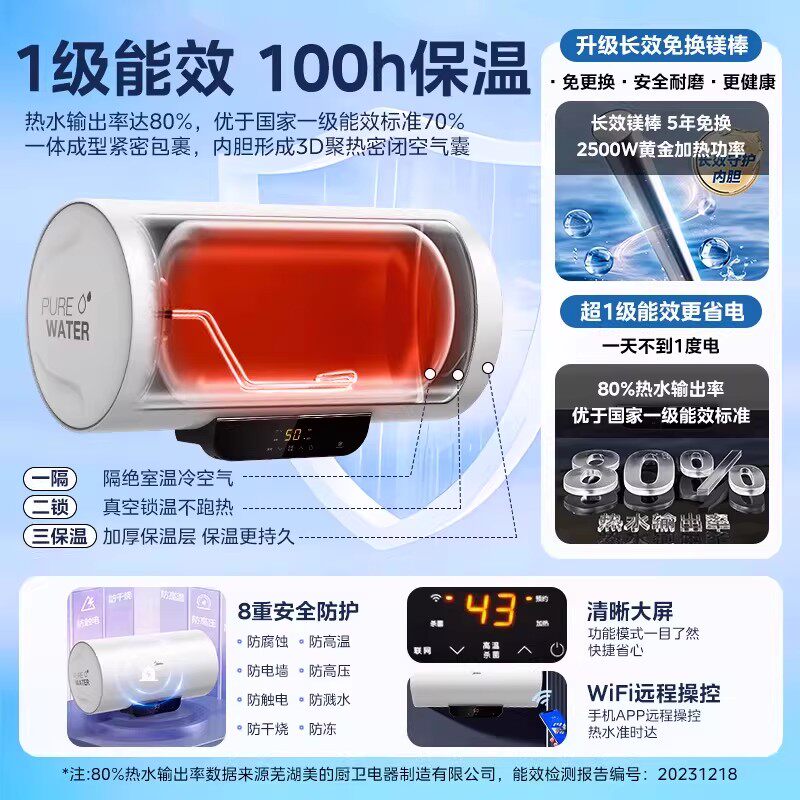 美的60L储水式一级能效速热保温