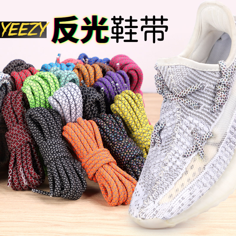 椰子鞋鞋带原装350反光yeezy黑天使男女满天星圆绳发光荧光白天使