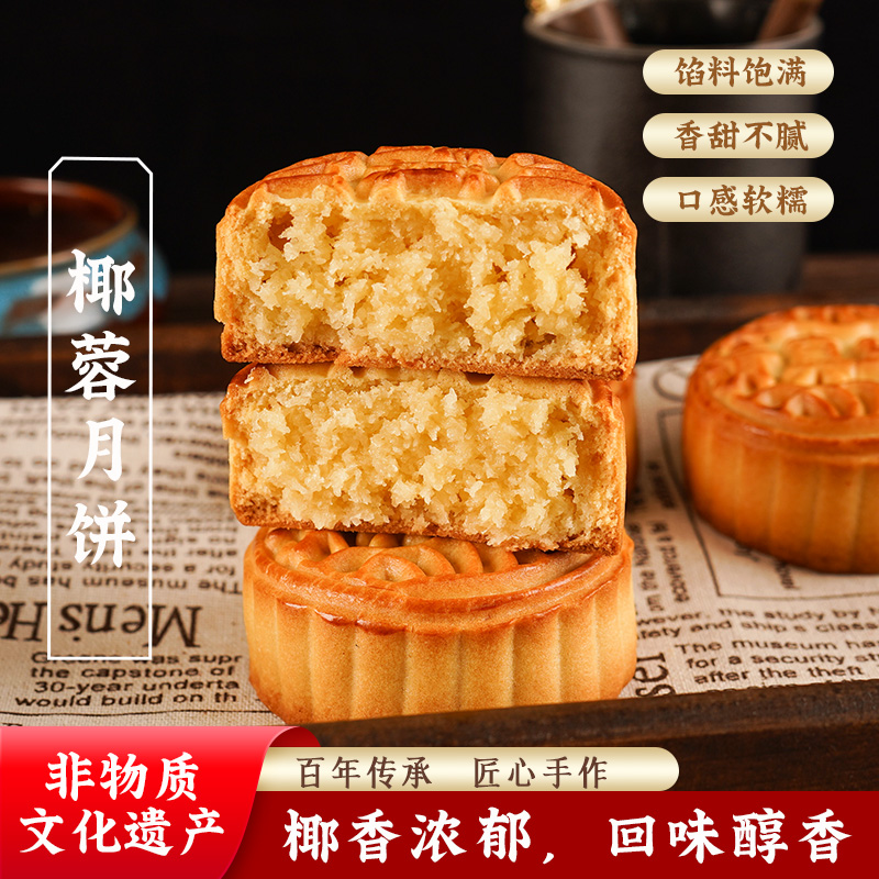 马四椰蓉月饼奶油奶黄馅料传统广式月饼椰蓉海南手工正宗清真月饼