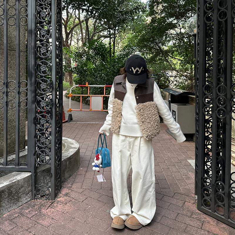 Our2时尚宽松白色灯芯绒裤子女新款直筒垂感高级感宽松休闲阔腿裤