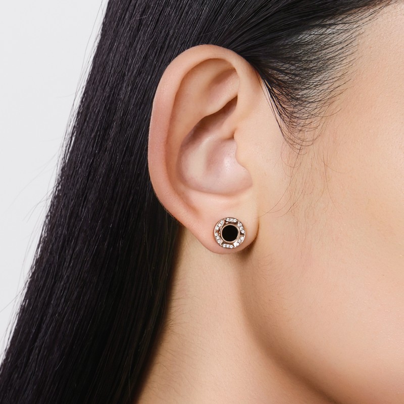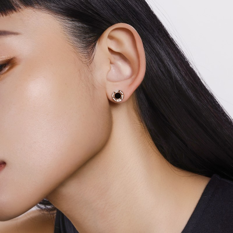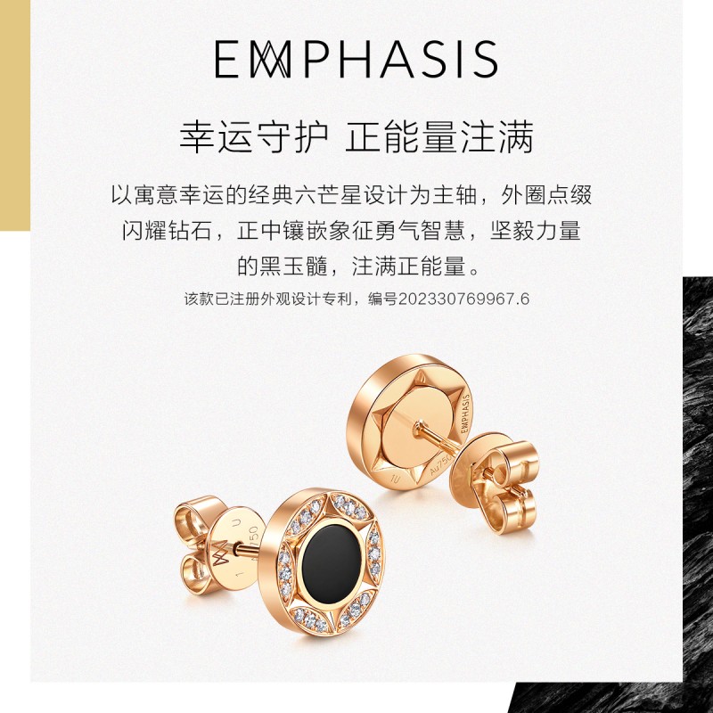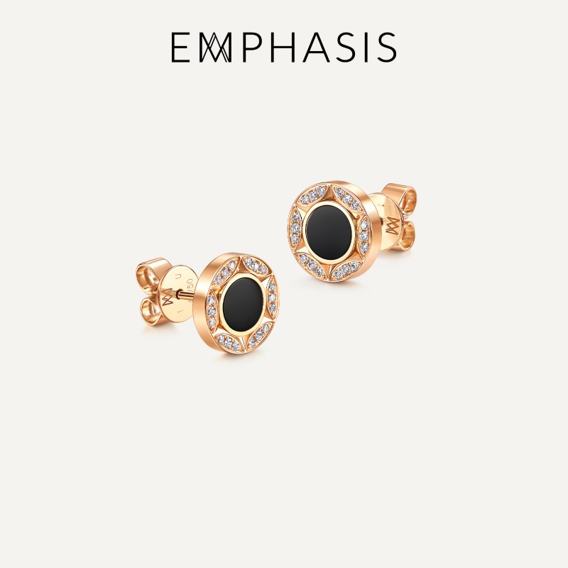 EMPHASIS艾斐诗「恒」系列18K玫瑰金黑玉髓钻石耳钉94602E预订